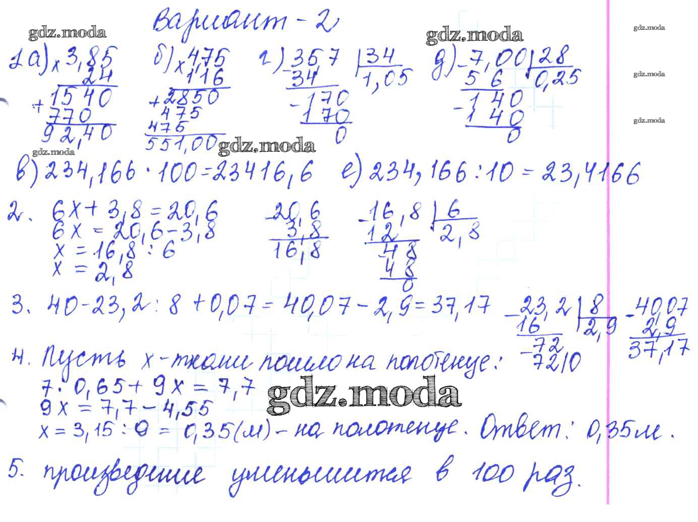 ГДЗ решение к заданию № 2 Математика 5 класс контрольные работы Жохов В.И. Мнемозина 2012 ФГОС бесплатно на гдз.мода!