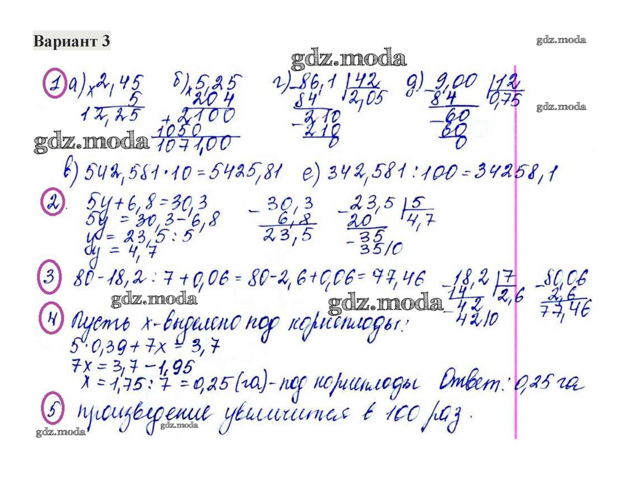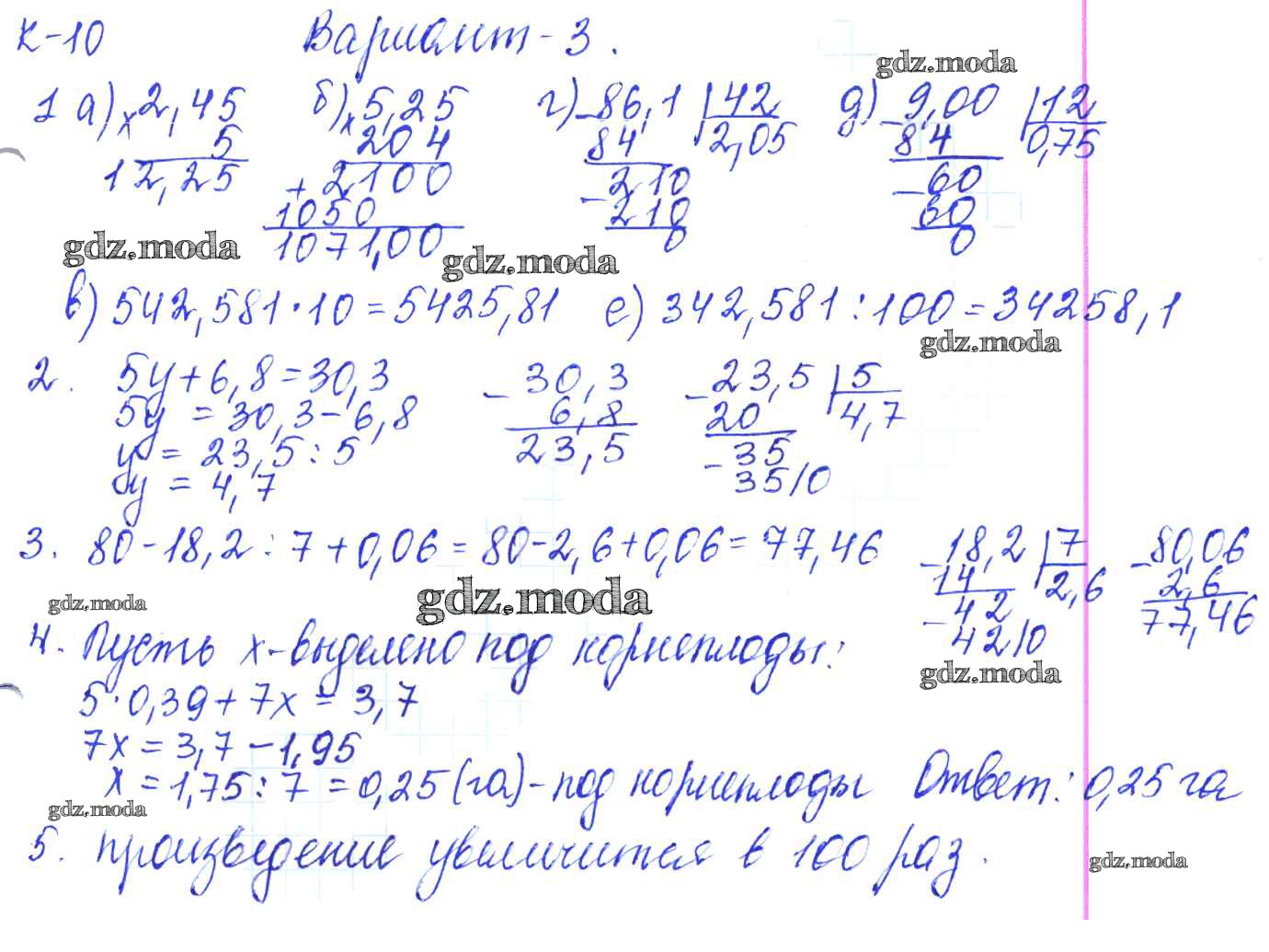 ГДЗ решение к заданию № 3 Математика 5 класс контрольные работы Жохов В.И. Мнемозина 2012 ФГОС бесплатно на гдз.мода!