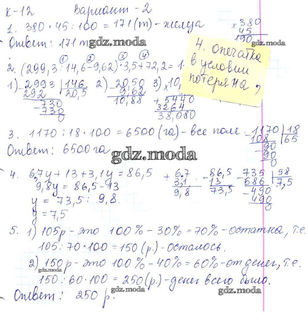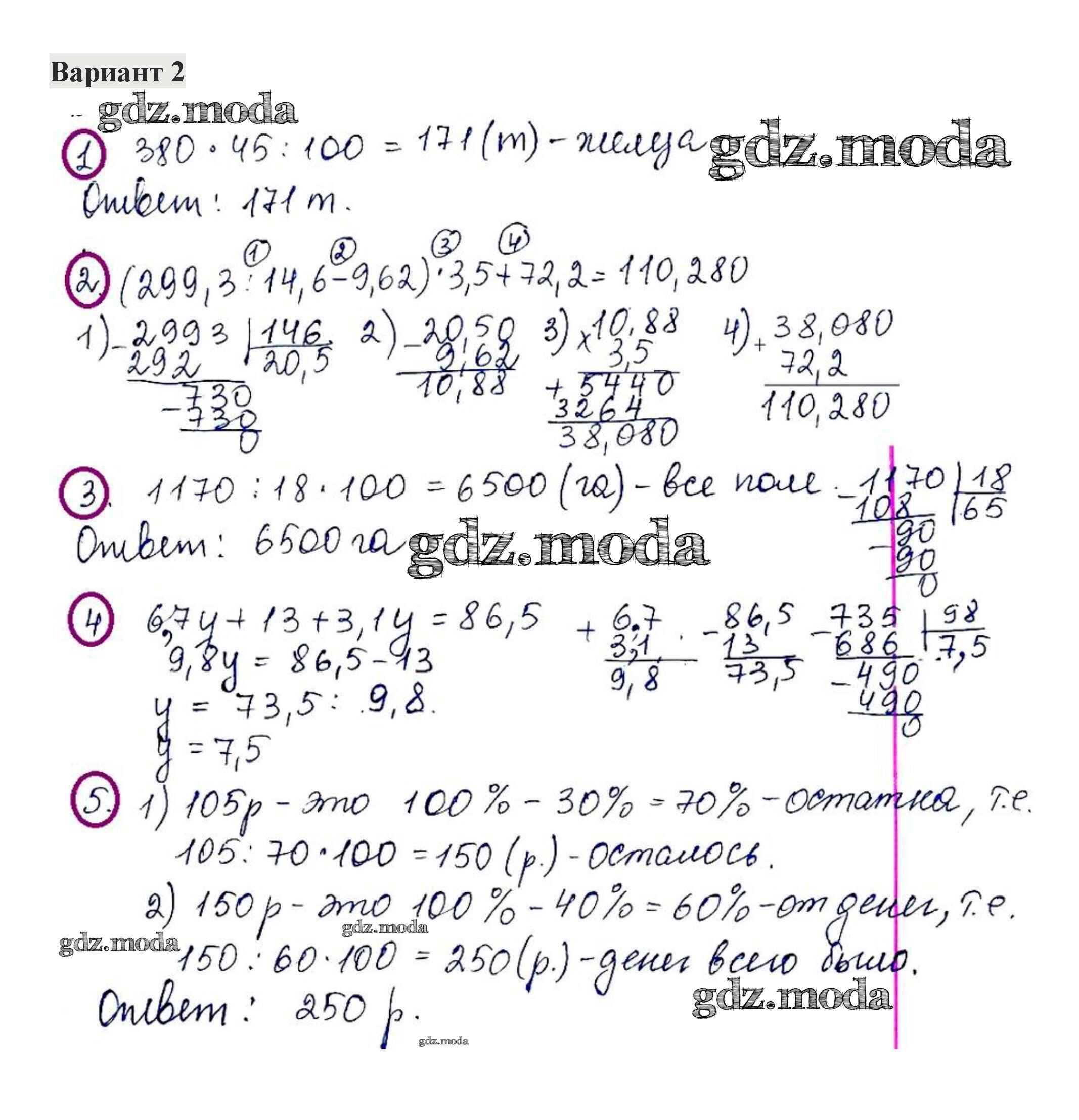 ГДЗ решение к заданию № 2 Математика 5 класс контрольные работы Жохов В.И. Мнемозина 2012 ФГОС бесплатно на гдз.мода!