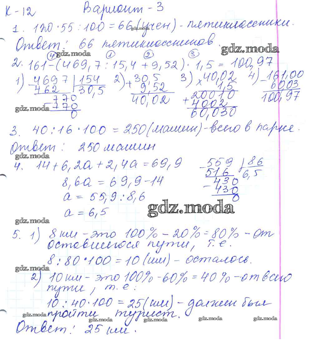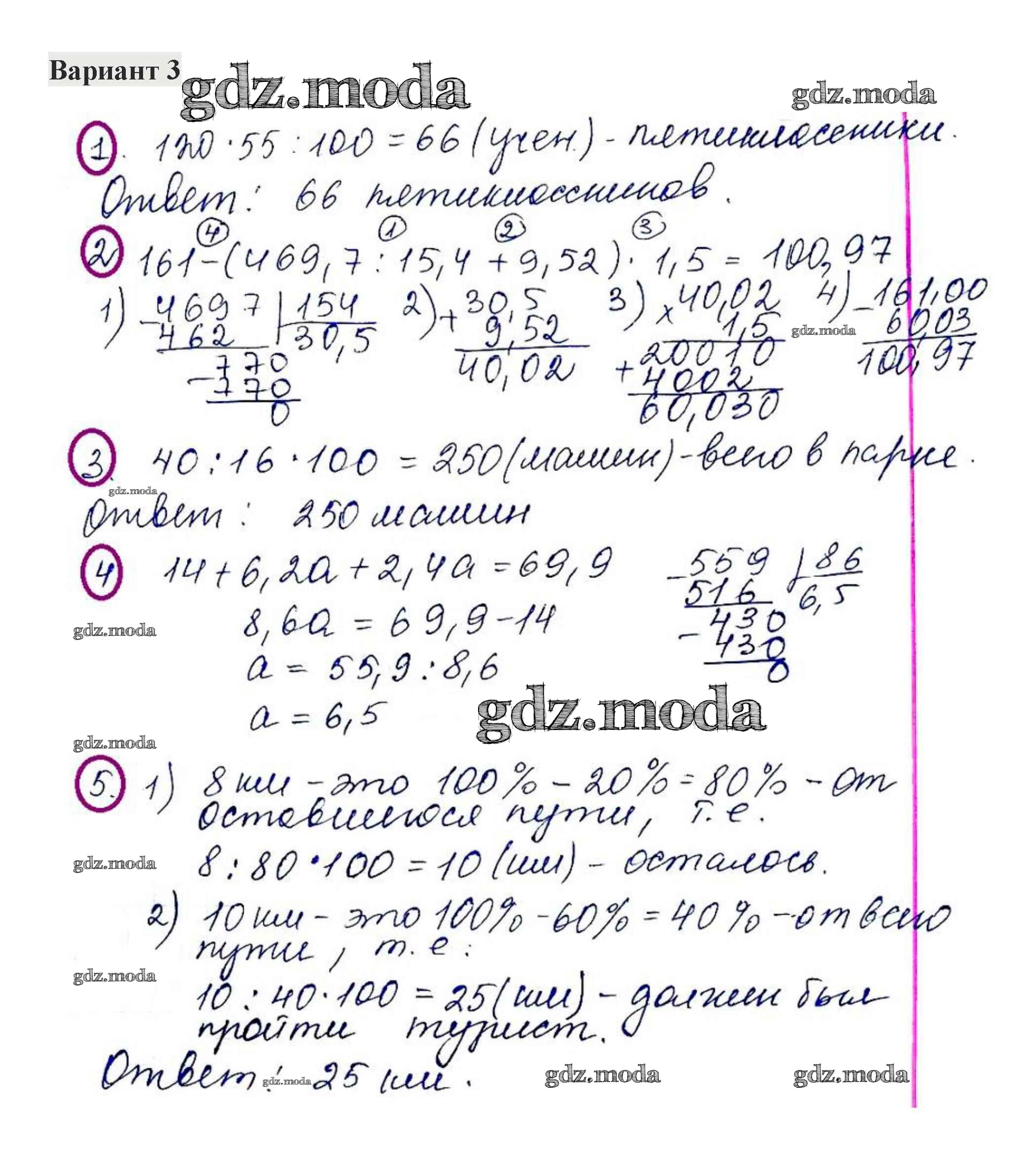 ГДЗ решение к заданию № 3 Математика 5 класс контрольные работы Жохов В.И. Мнемозина 2012 ФГОС бесплатно на гдз.мода!