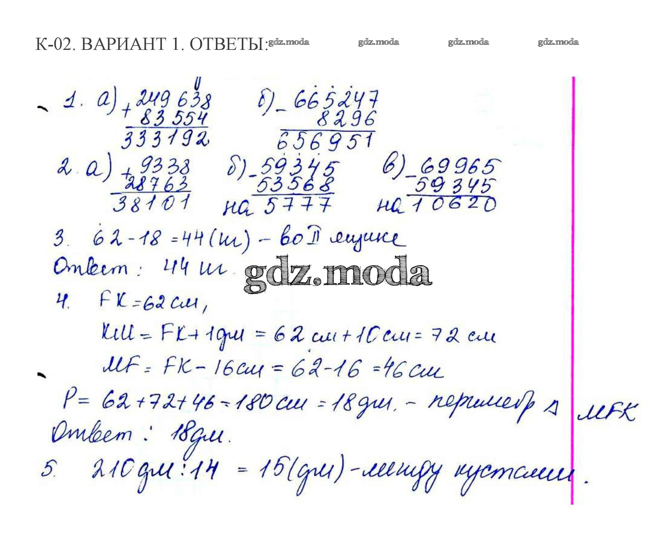 ОТВЕТ на задание № 1 Контрольные работы по Математике 5 класс Жохов