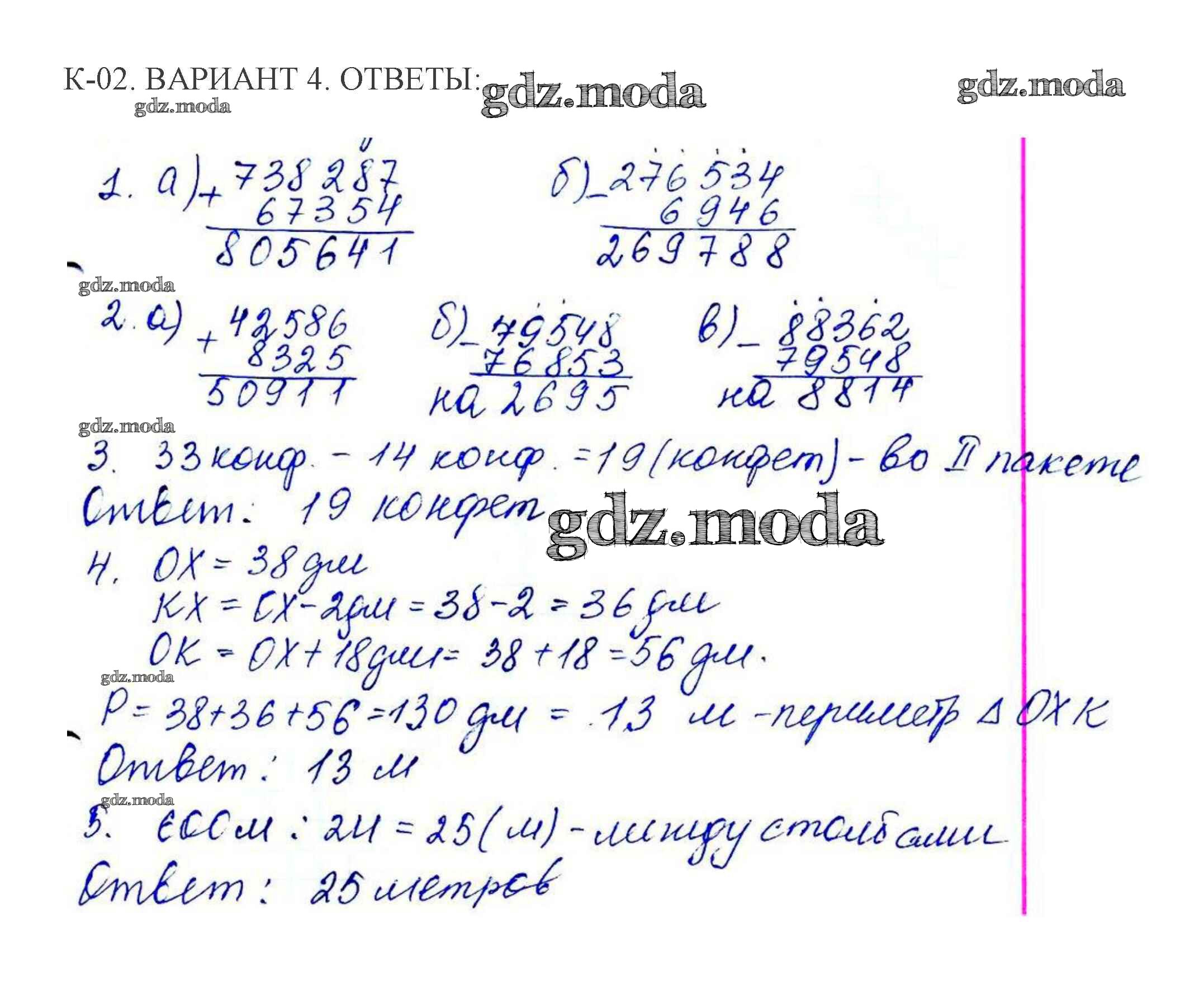ГДЗ решение к заданию № 4 Математика 5 класс контрольные работы Жохов В.И. Мнемозина 2012 ФГОС бесплатно на гдз.мода!