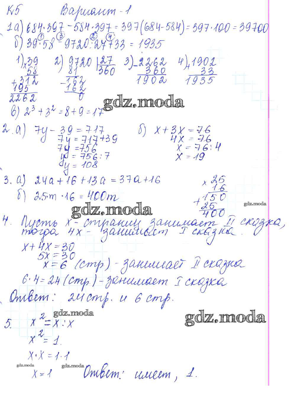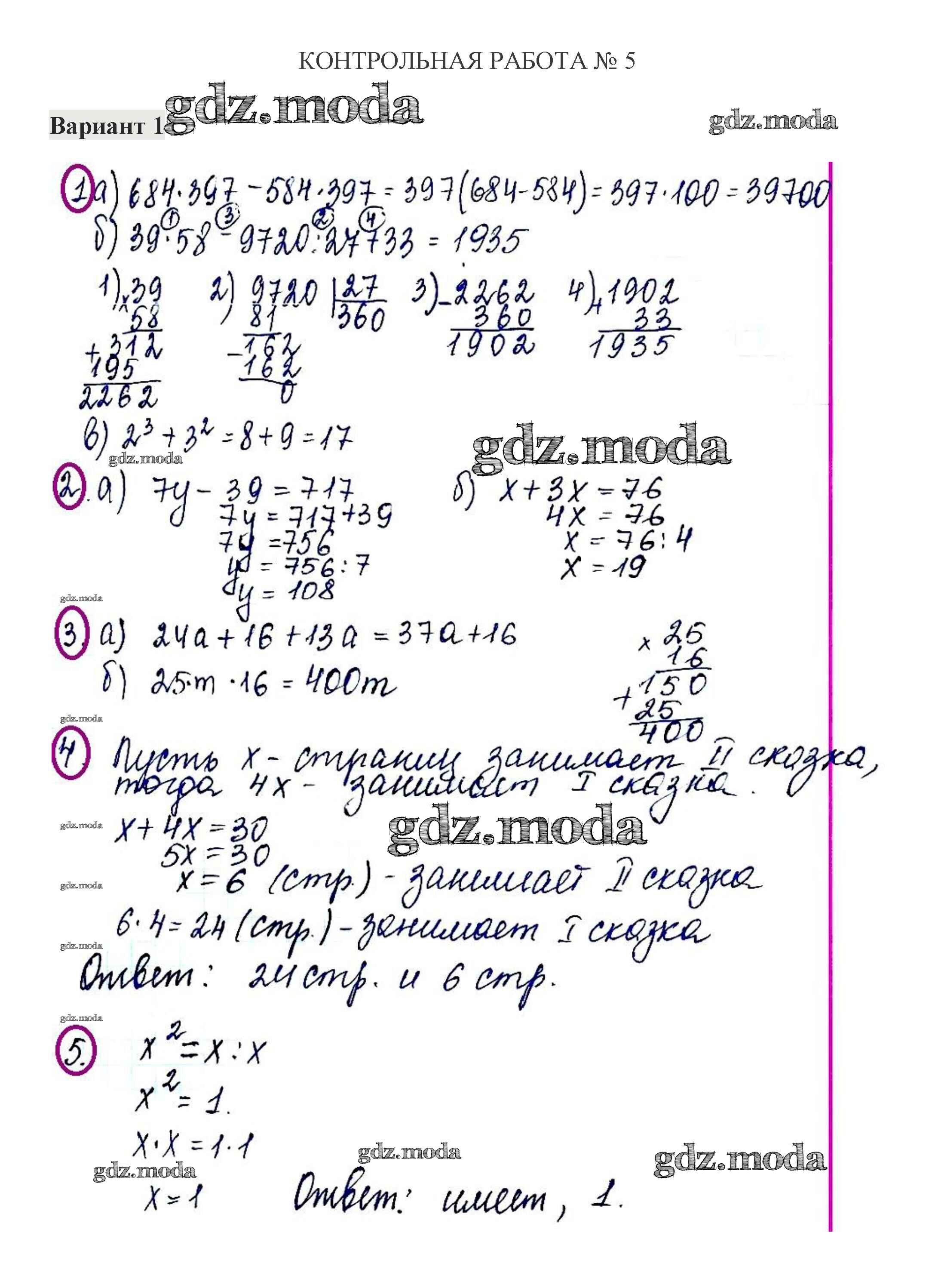 ГДЗ решение к заданию № 1 Математика 5 класс контрольные работы Жохов В.И. Мнемозина 2012 ФГОС бесплатно на гдз.мода!