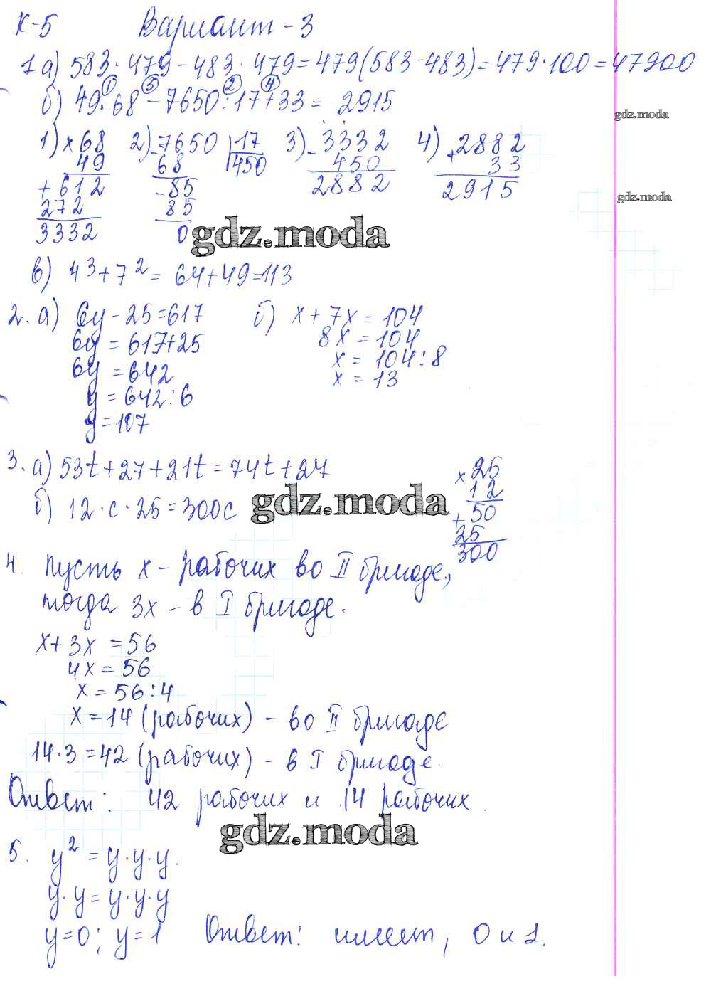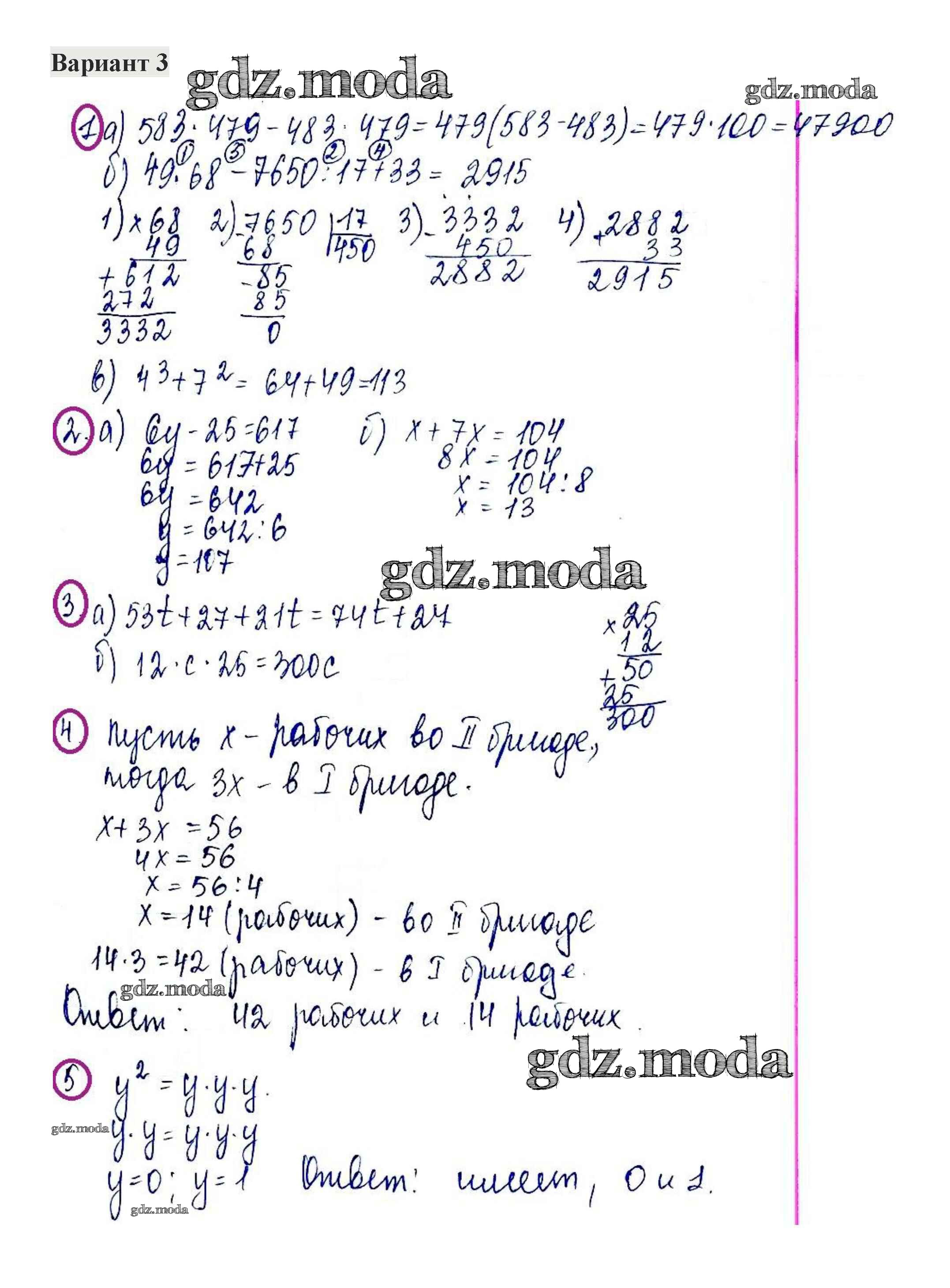 ГДЗ решение к заданию № 3 Математика 5 класс контрольные работы Жохов В.И. Мнемозина 2012 ФГОС бесплатно на гдз.мода!