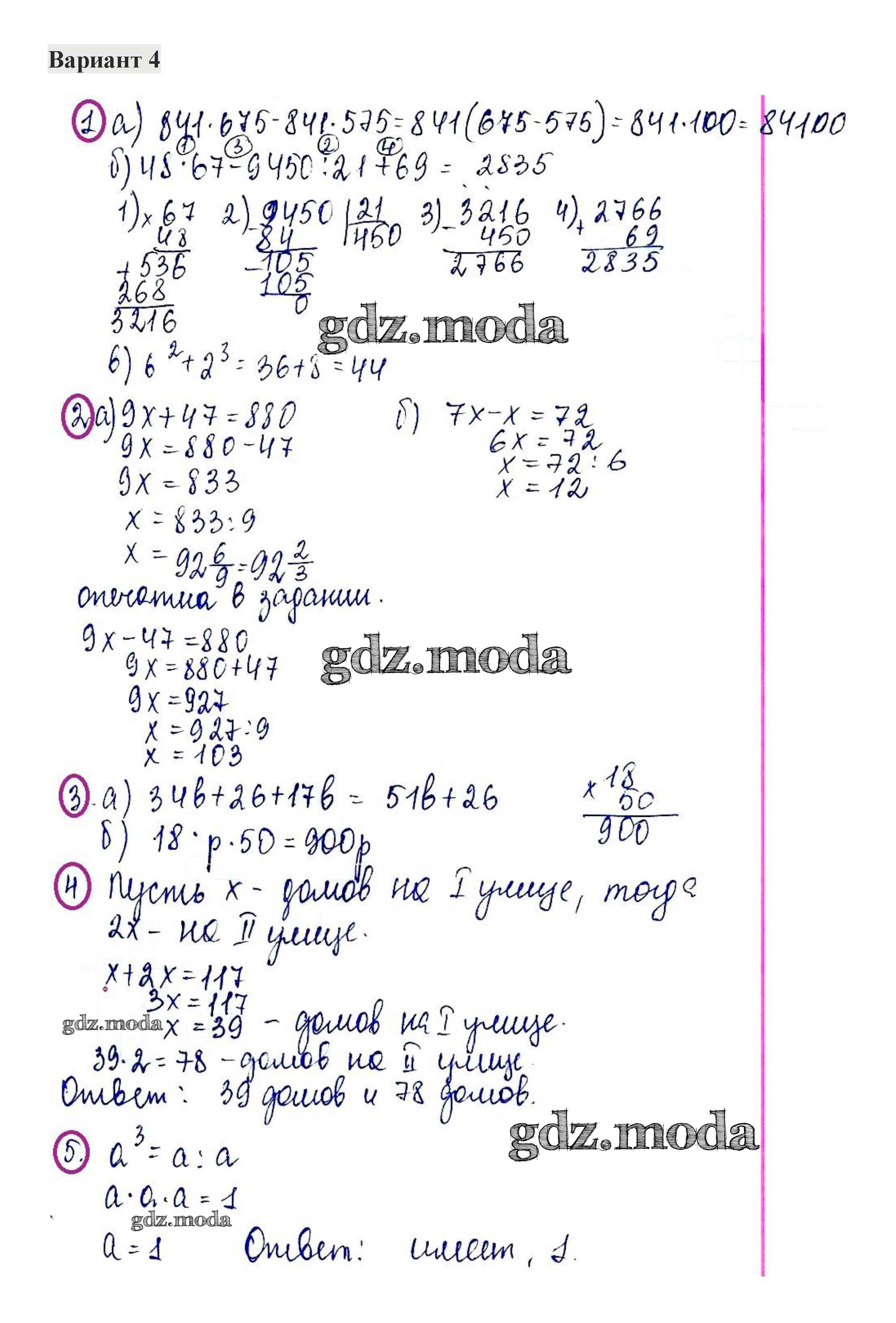 ГДЗ решение к заданию № 4 Математика 5 класс контрольные работы Жохов В.И. Мнемозина 2012 ФГОС бесплатно на гдз.мода!