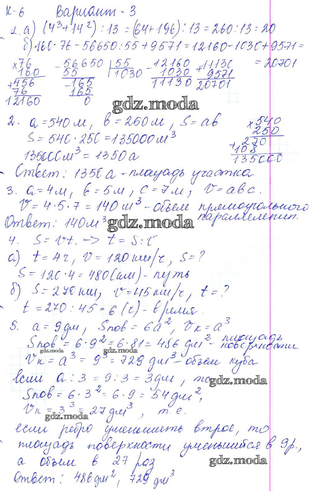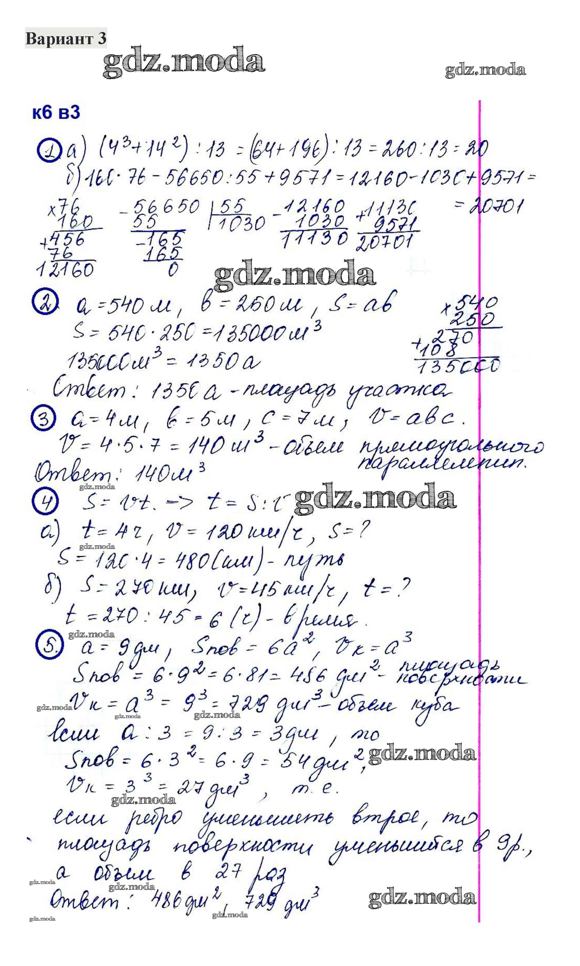 ГДЗ решение к заданию № 3 Математика 5 класс контрольные работы Жохов В.И. Мнемозина 2012 ФГОС бесплатно на гдз.мода!