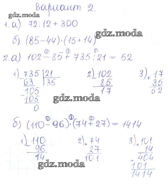 ГДЗ решение к заданию № вариант-2 Математика 5 класс Дидактические материалы Кузнецова Л.В. Просвещение 2014 ФГОС бесплатно на гдз.мода!