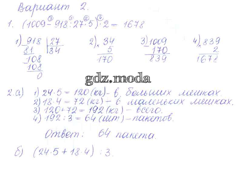 ГДЗ решение к заданию № вариант-2 Математика 5 класс Дидактические материалы Кузнецова Л.В. Просвещение 2014 ФГОС бесплатно на гдз.мода!