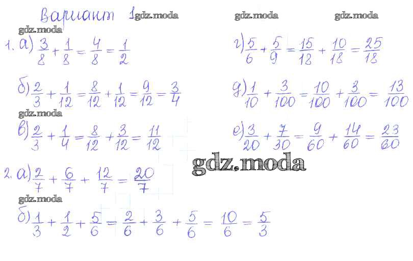 ОТВЕТ на задание № вариант-1 Дидактические материалы по Математике 5 класс Кузнецова Академический школьный учебник