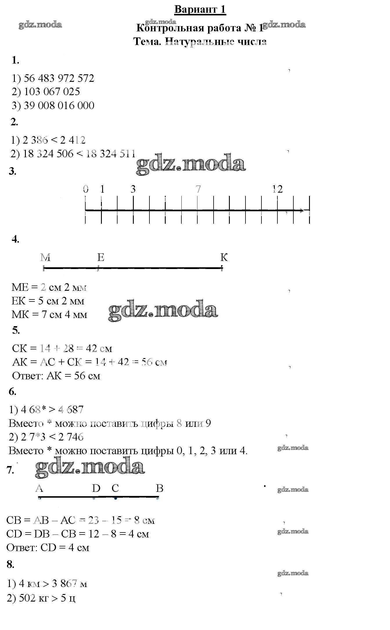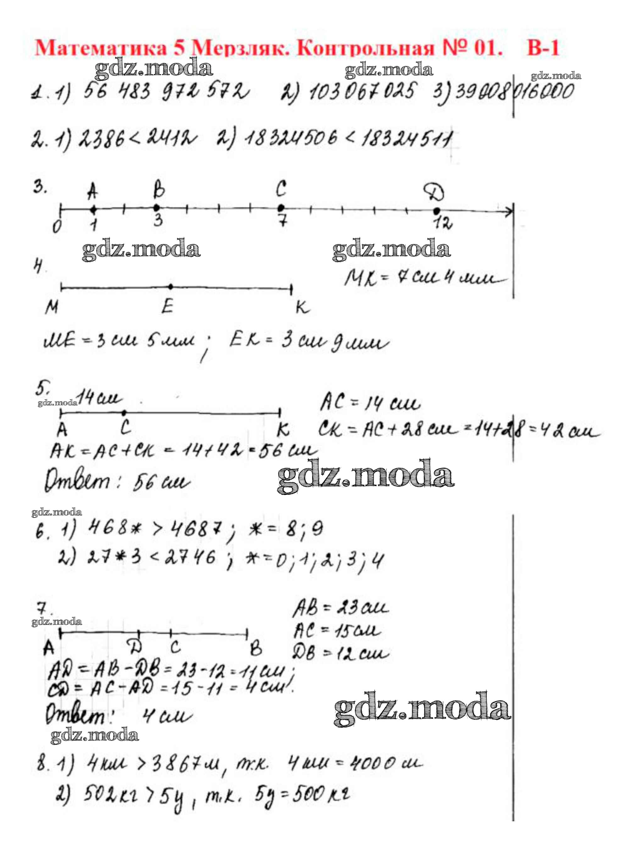 ОТВЕТ на задание № вариант 1 Дидактические материалы по Математике 5 класс Мерзляк Алгоритм успеха