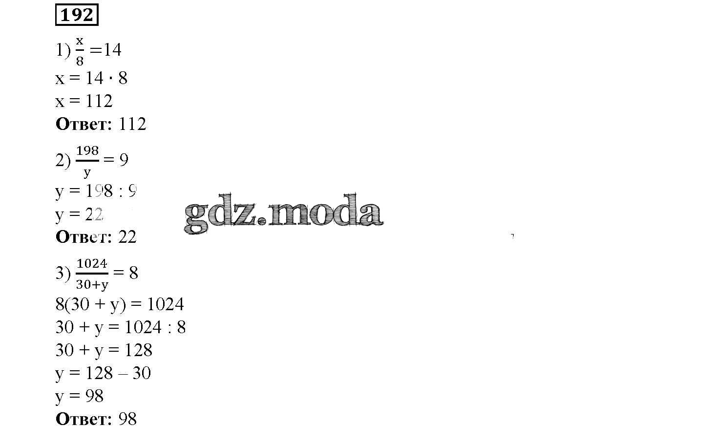 ОТВЕТ на задание № 192 Дидактические материалы по Математике 5 класс Мерзляк Алгоритм успеха