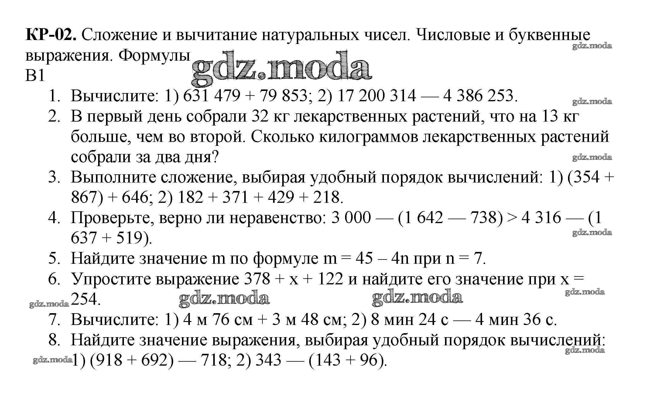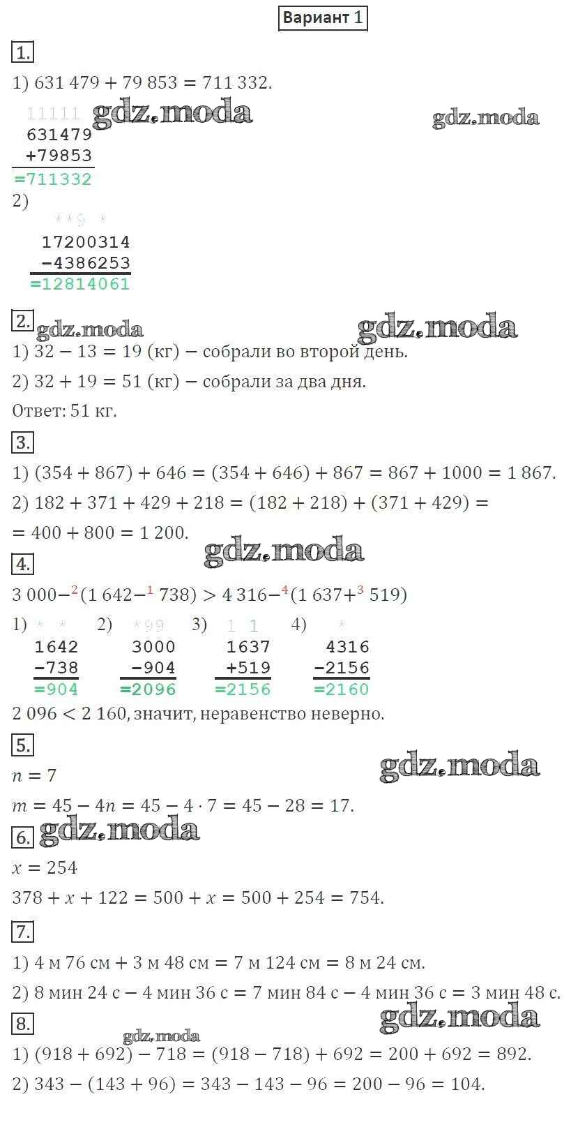 ОТВЕТ на задание № вариант 1 Дидактические материалы по Математике 5 класс Мерзляк Алгоритм успеха