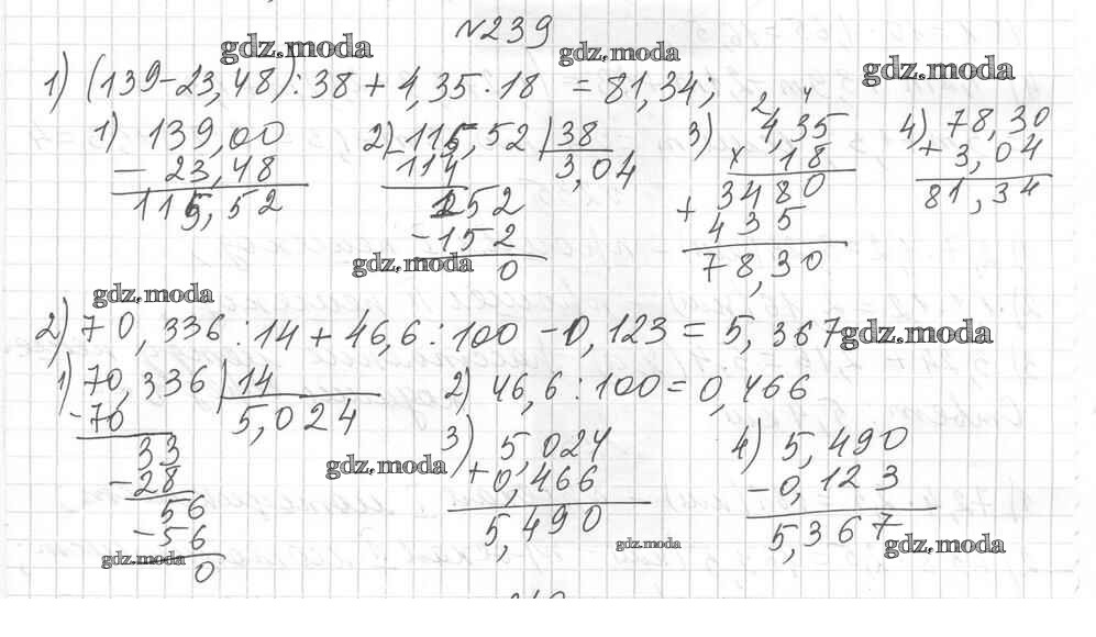 ОТВЕТ на задание № 239 Дидактические материалы по Математике 5 класс Мерзляк Алгоритм успеха