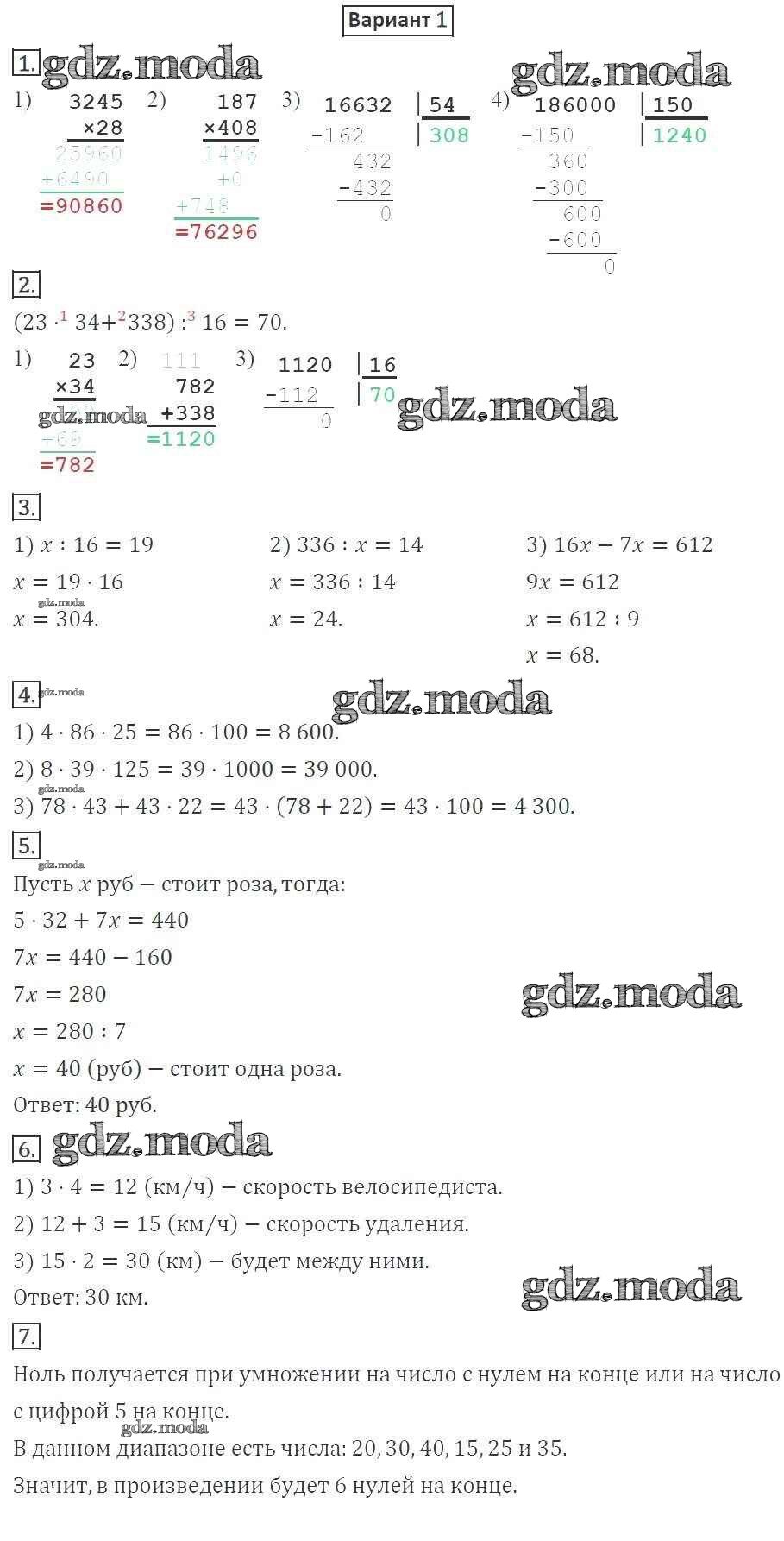 ОТВЕТ на задание № вариант 1 Дидактические материалы по Математике 5 класс Мерзляк Алгоритм успеха
