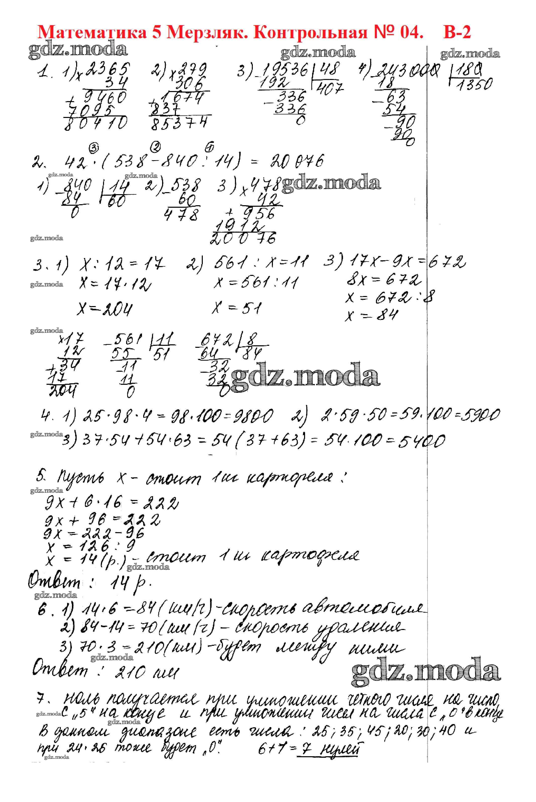 ОТВЕТ на задание № вариант 2 Дидактические материалы по Математике 5 класс Мерзляк Алгоритм успеха