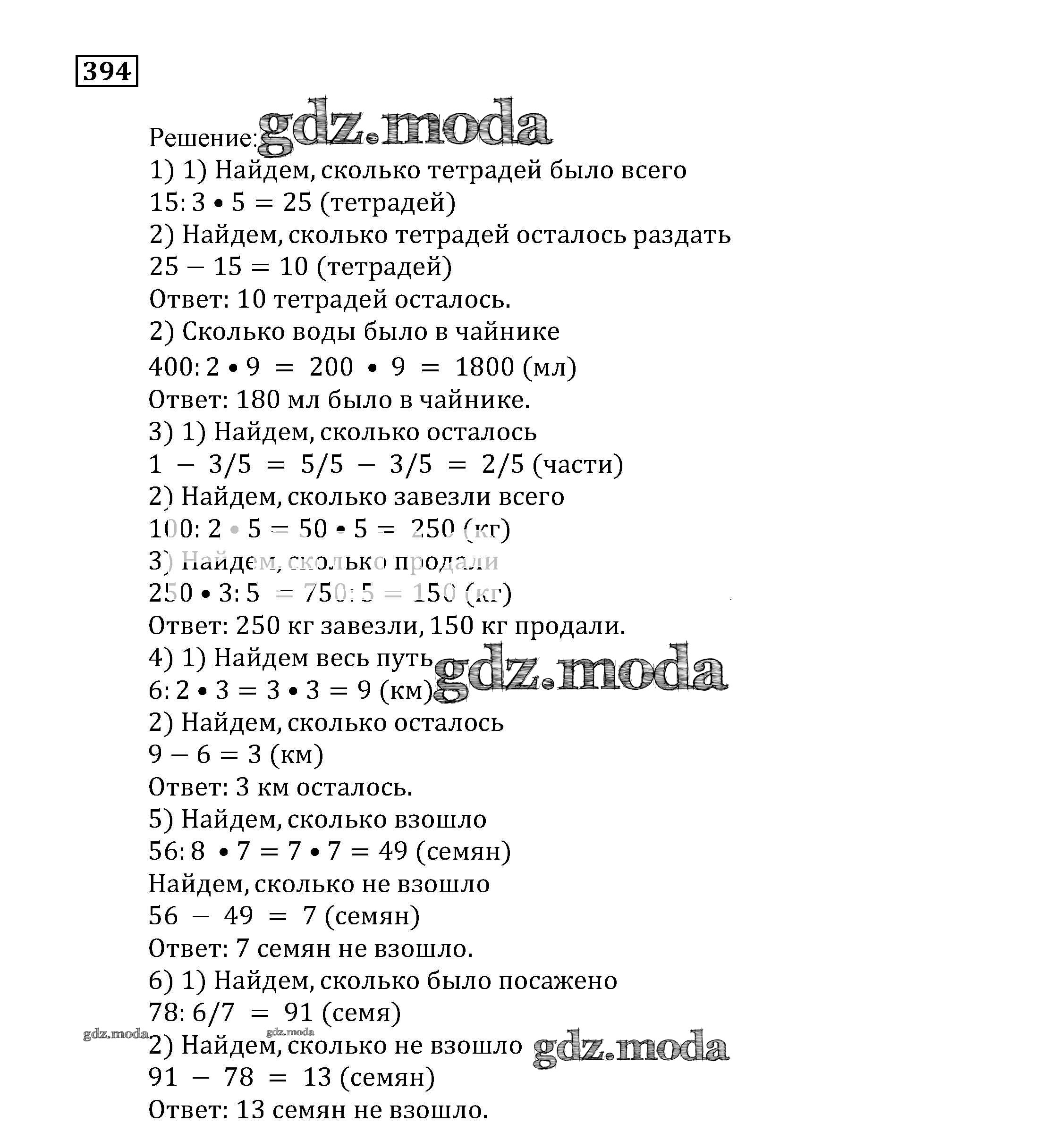 ОТВЕТ на задание № 394 Учебник по Математике 5 класс Муравин