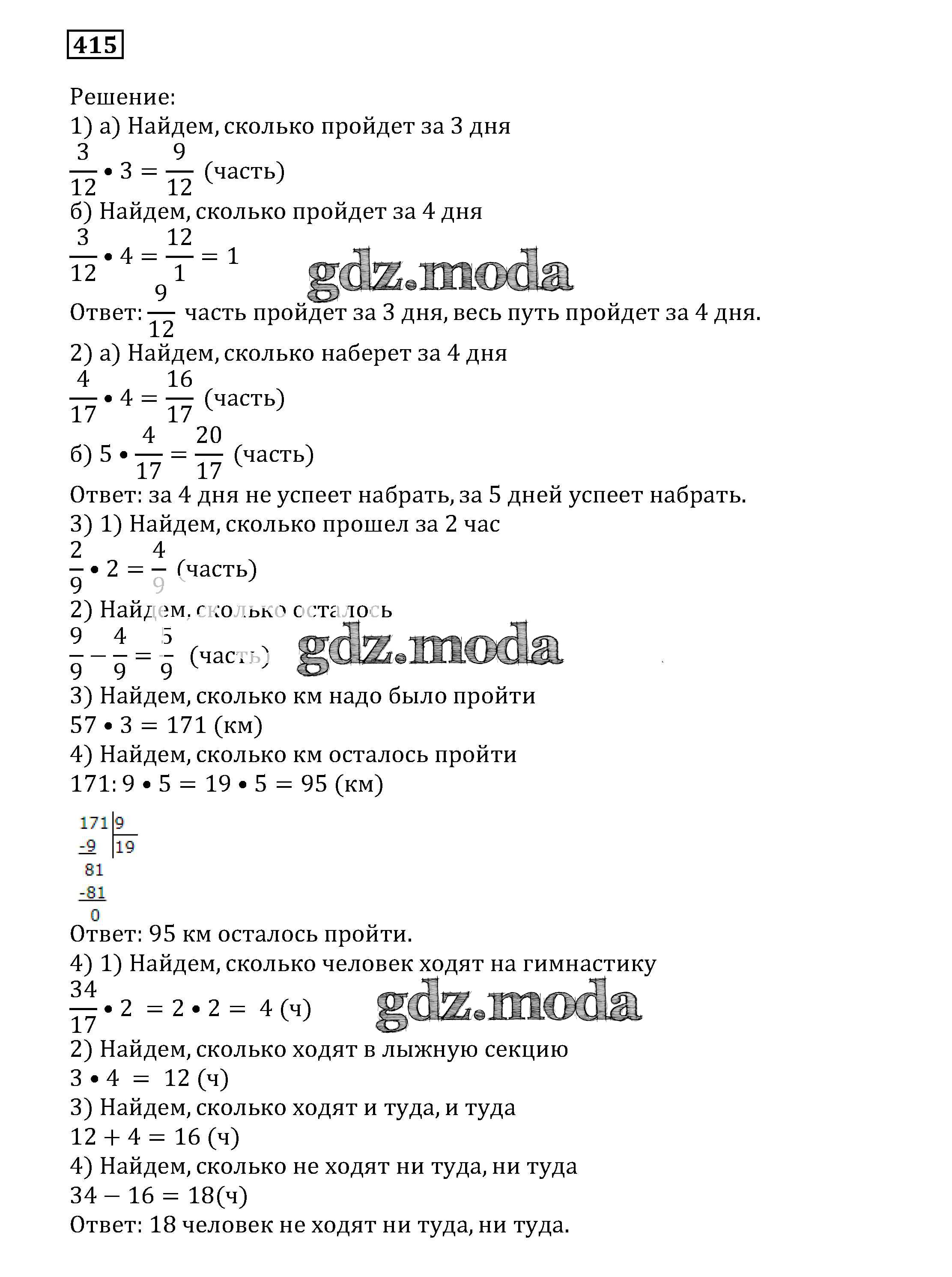ОТВЕТ на задание № 415 Учебник по Математике 5 класс Муравин