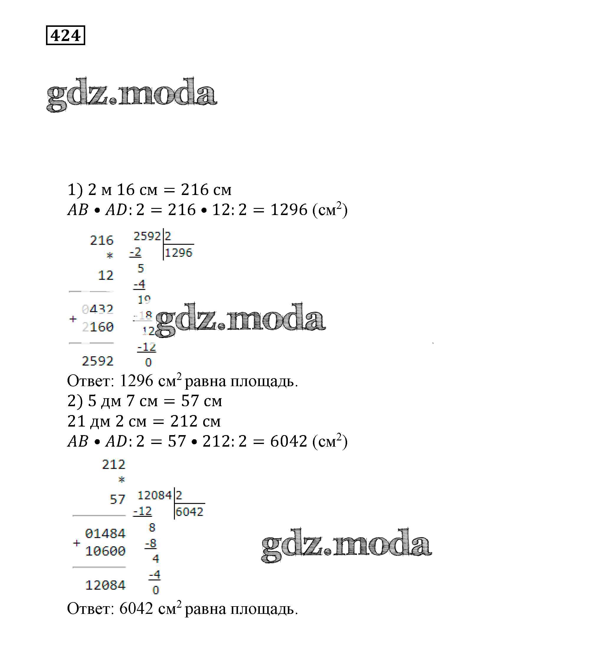 ОТВЕТ на задание № 424 Учебник по Математике 5 класс Муравин