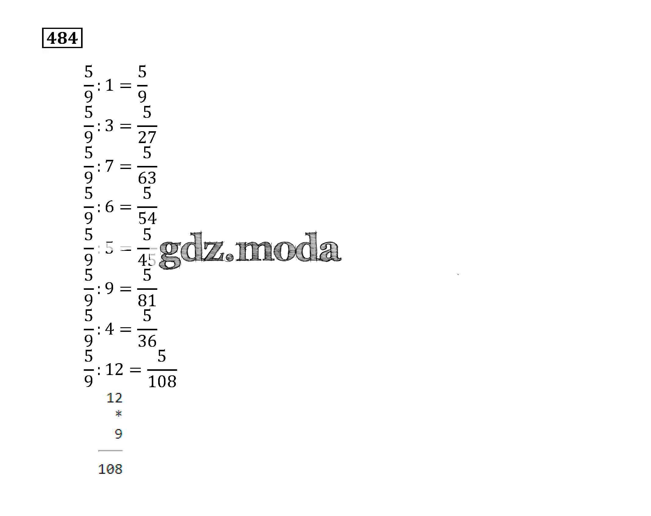 ОТВЕТ на задание № 484 Учебник по Математике 5 класс Муравин
