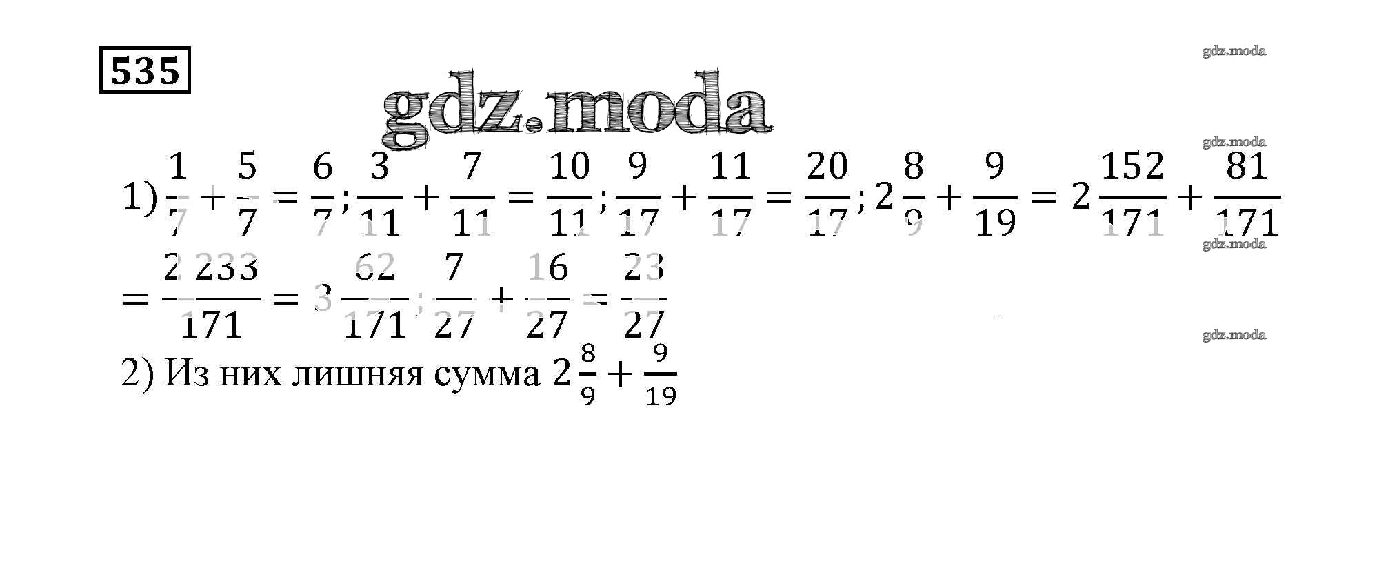 ОТВЕТ на задание № 535 Учебник по Математике 5 класс Муравин