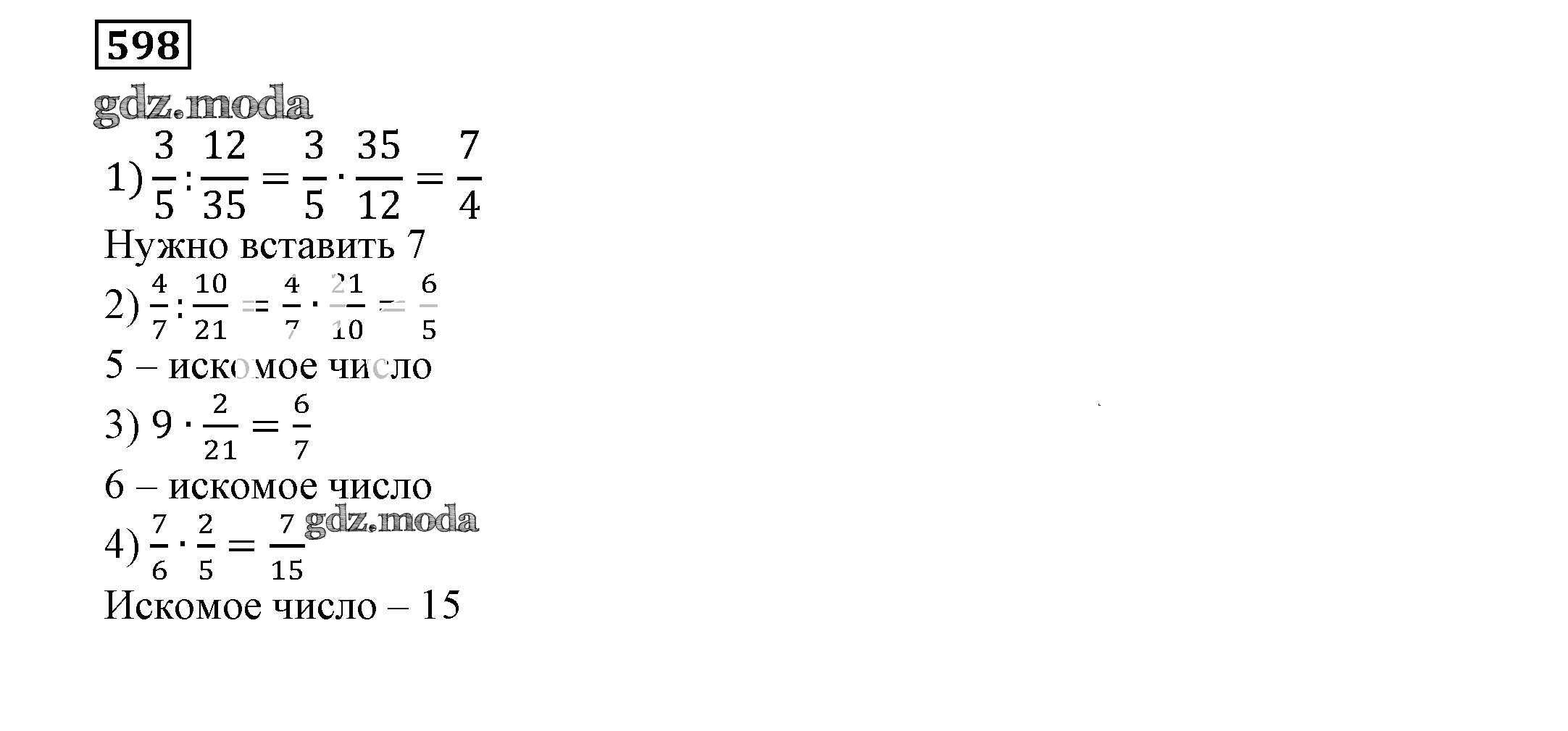 ОТВЕТ на задание № 598 Учебник по Математике 5 класс Муравин