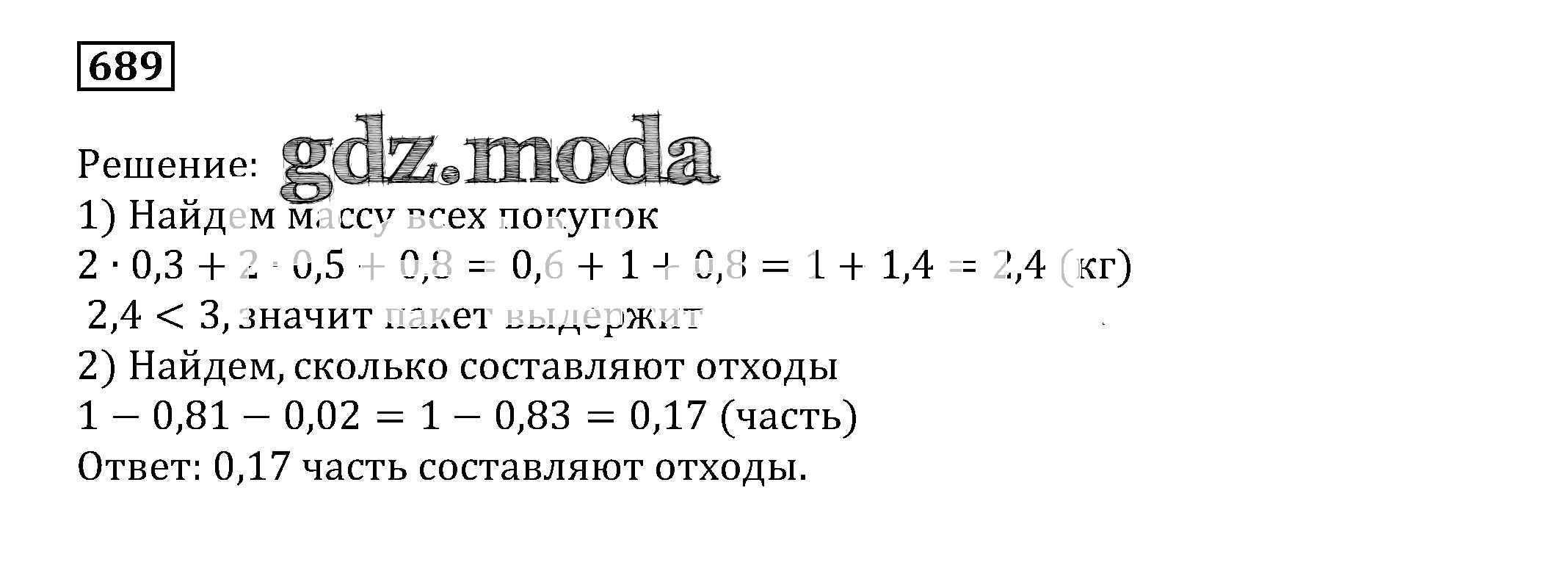 ОТВЕТ на задание № 689 Учебник по Математике 5 класс Муравин