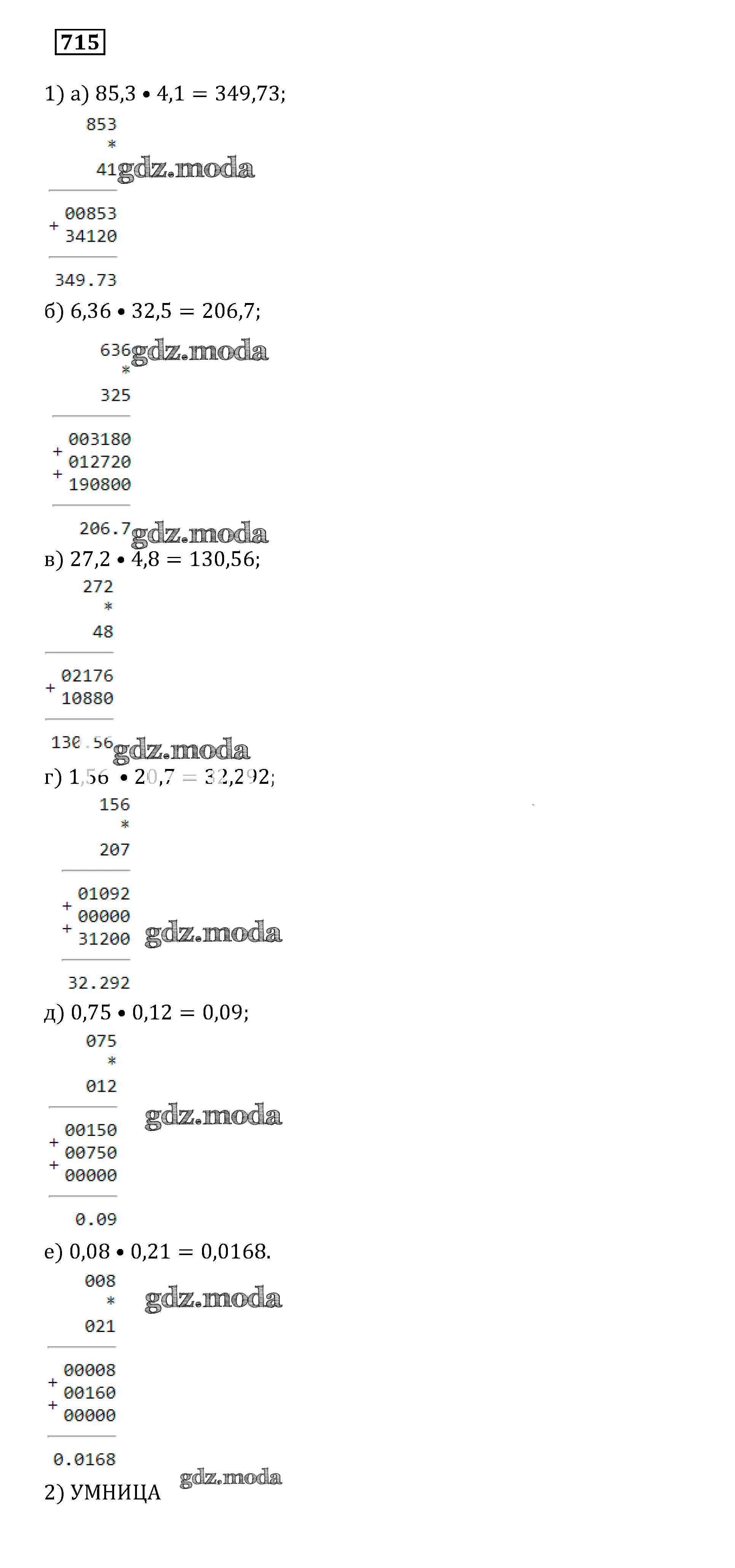 ОТВЕТ на задание № 715 Учебник по Математике 5 класс Муравин