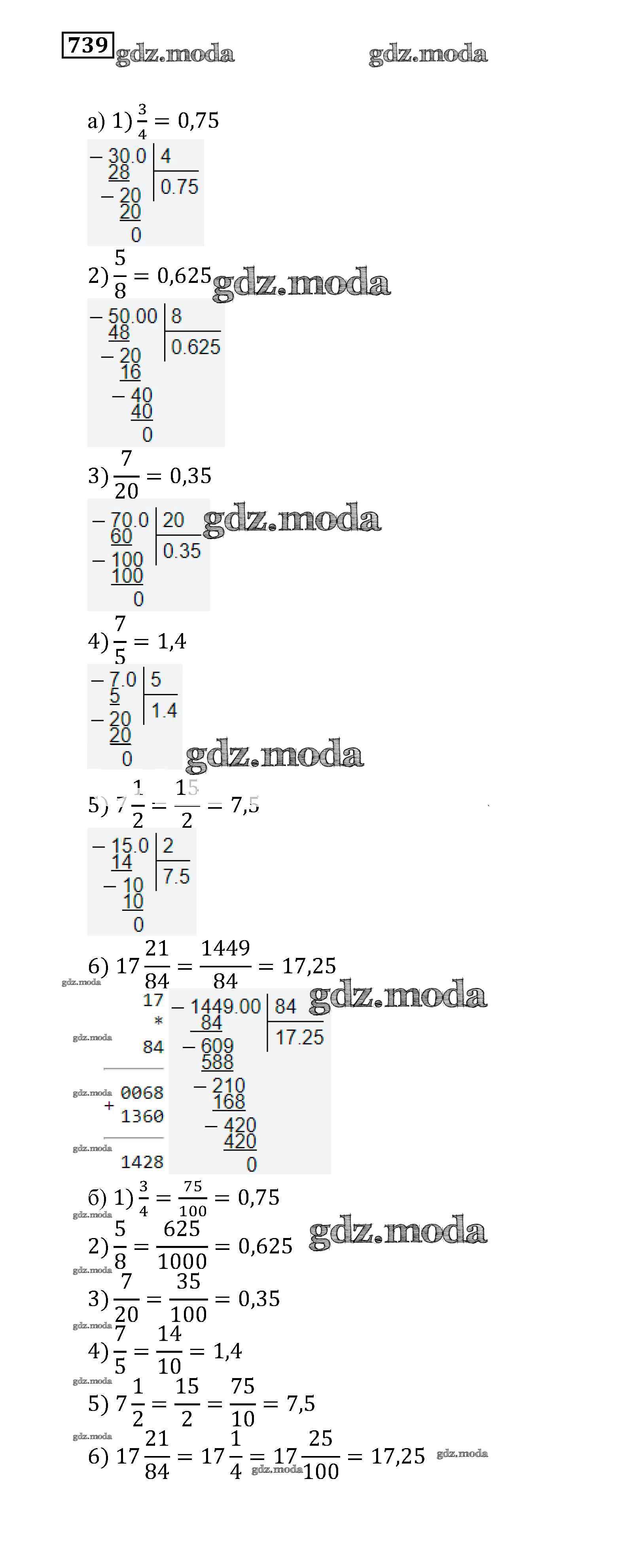 ОТВЕТ на задание № 739 Учебник по Математике 5 класс Муравин