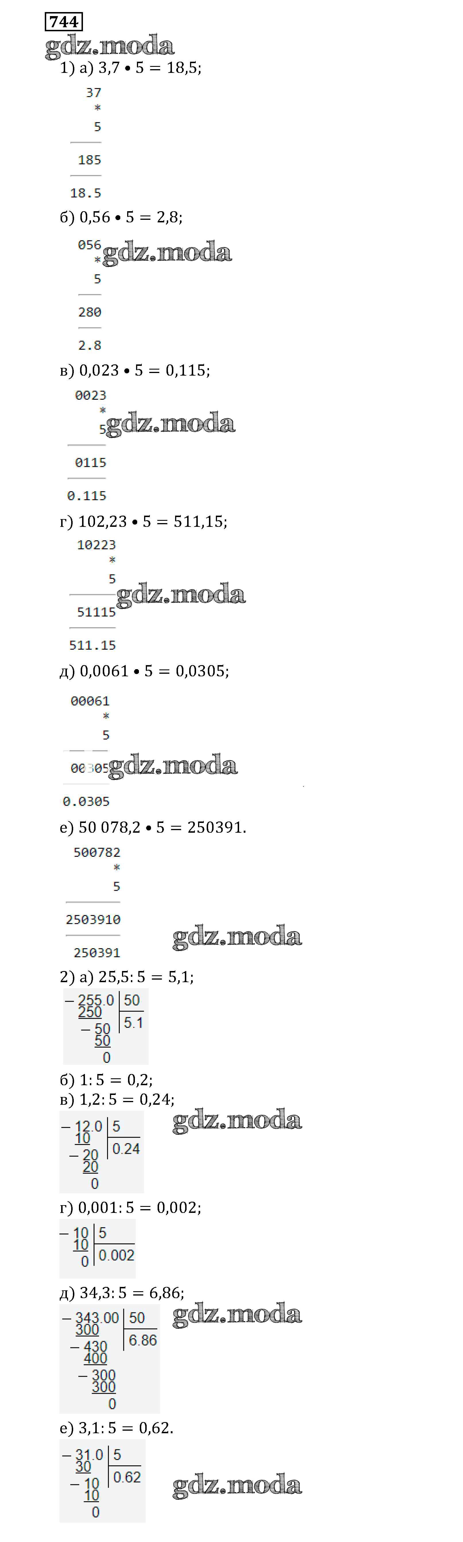 ОТВЕТ на задание № 744 Учебник по Математике 5 класс Муравин