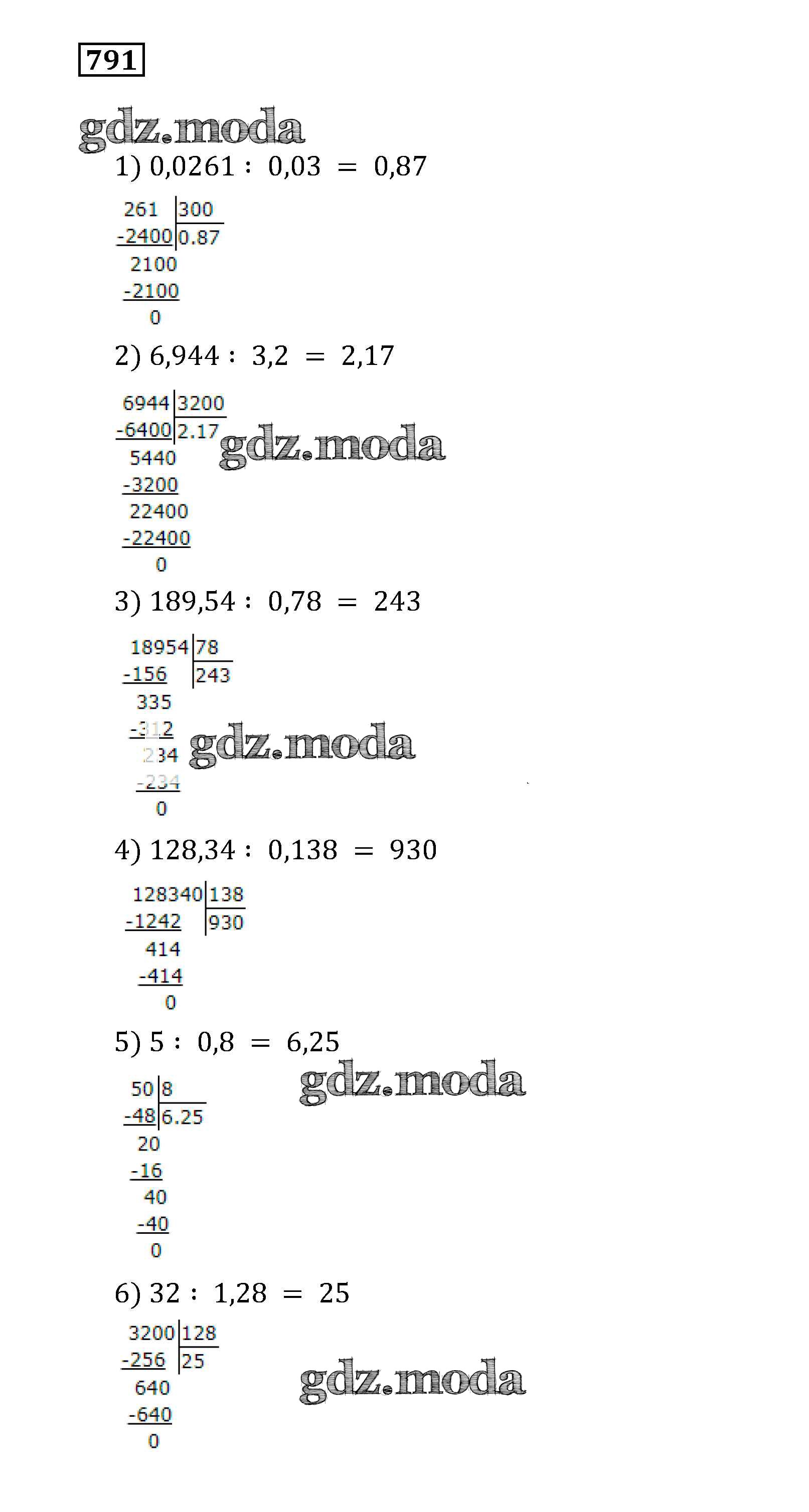 ОТВЕТ на задание № 791 Учебник по Математике 5 класс Муравин
