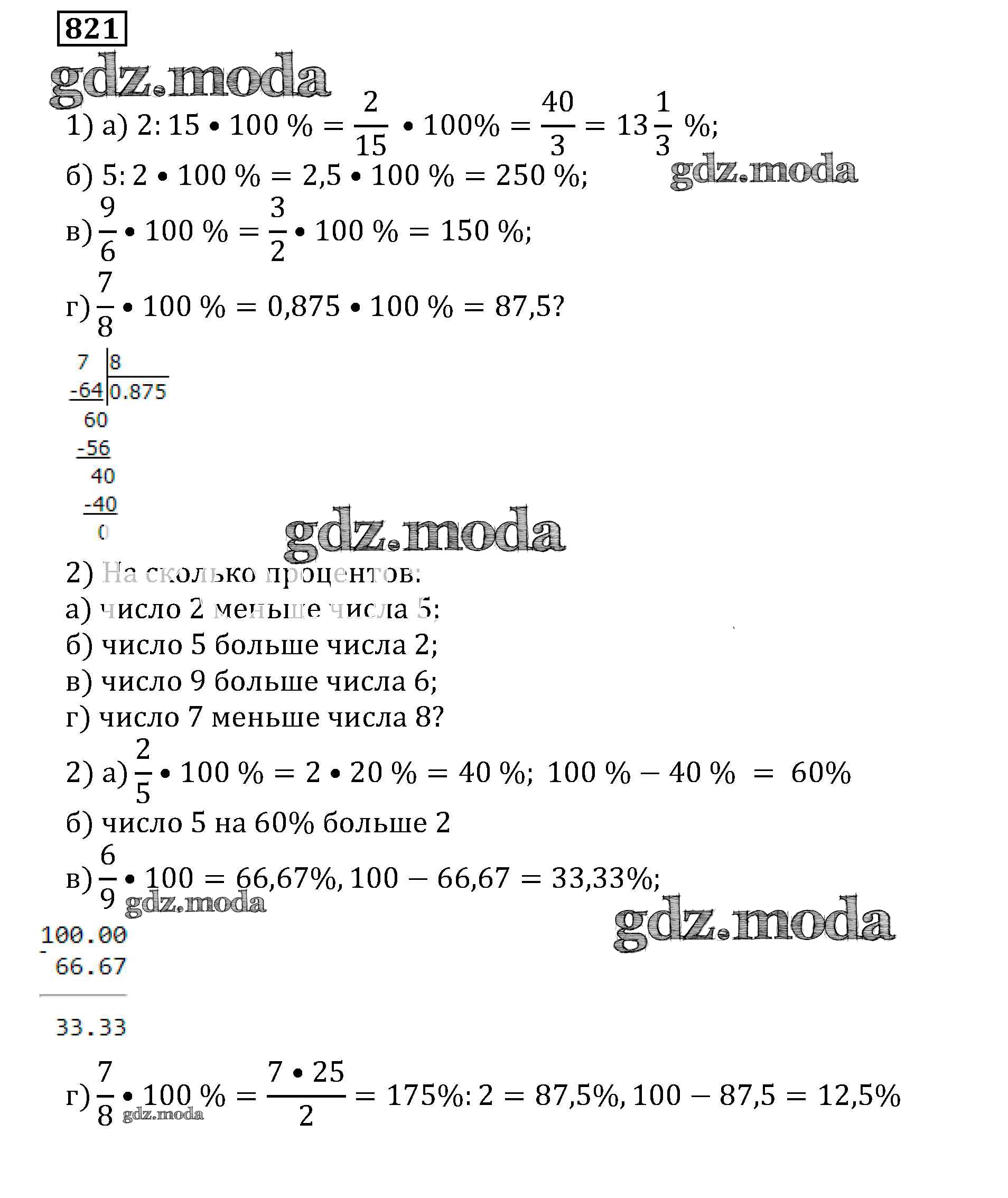 ОТВЕТ на задание № 821 Учебник по Математике 5 класс Муравин