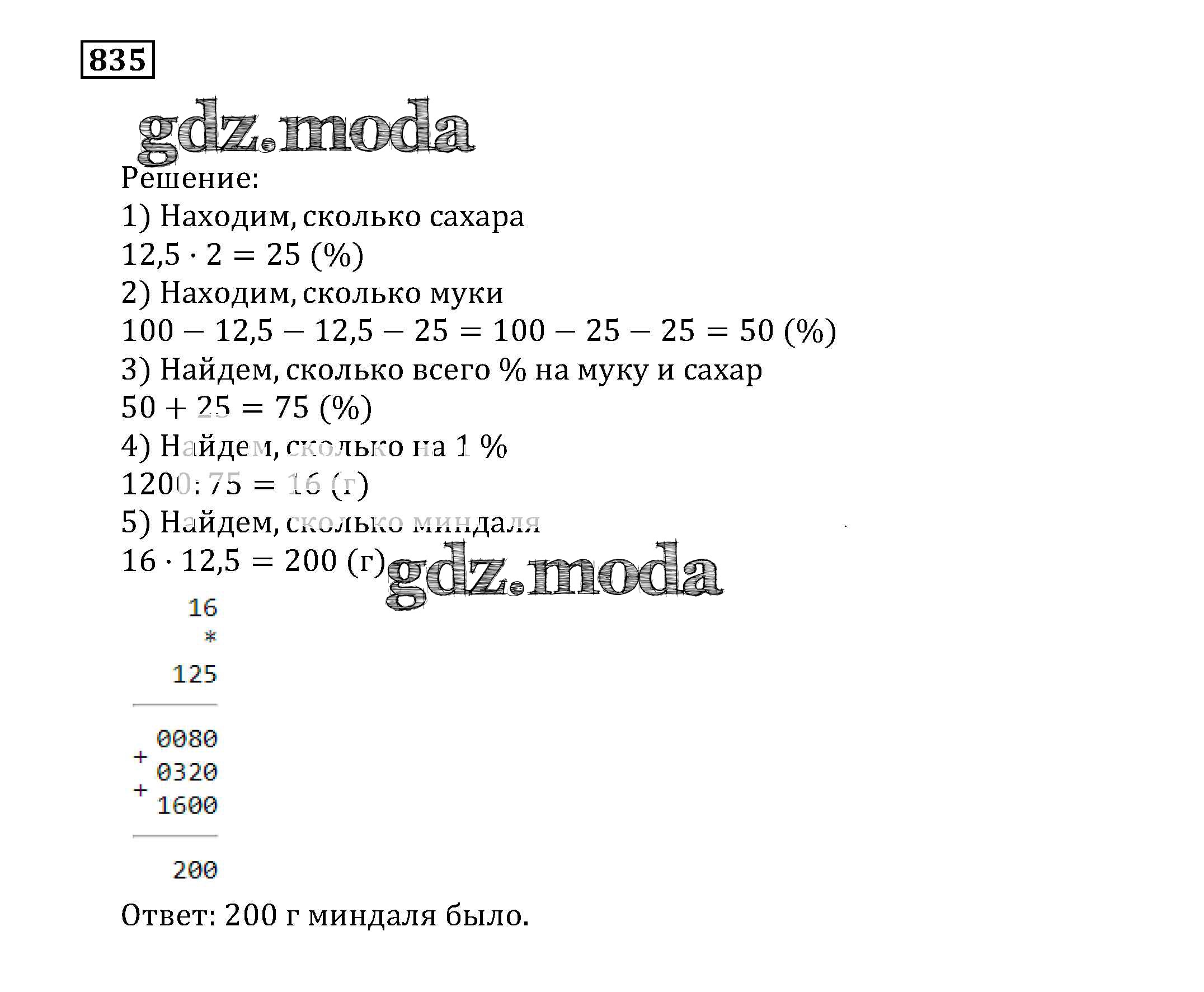 ОТВЕТ на задание № 835 Учебник по Математике 5 класс Муравин
