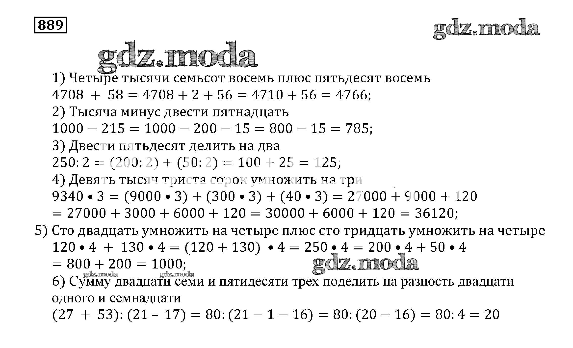 ОТВЕТ на задание № 889 Учебник по Математике 5 класс Муравин