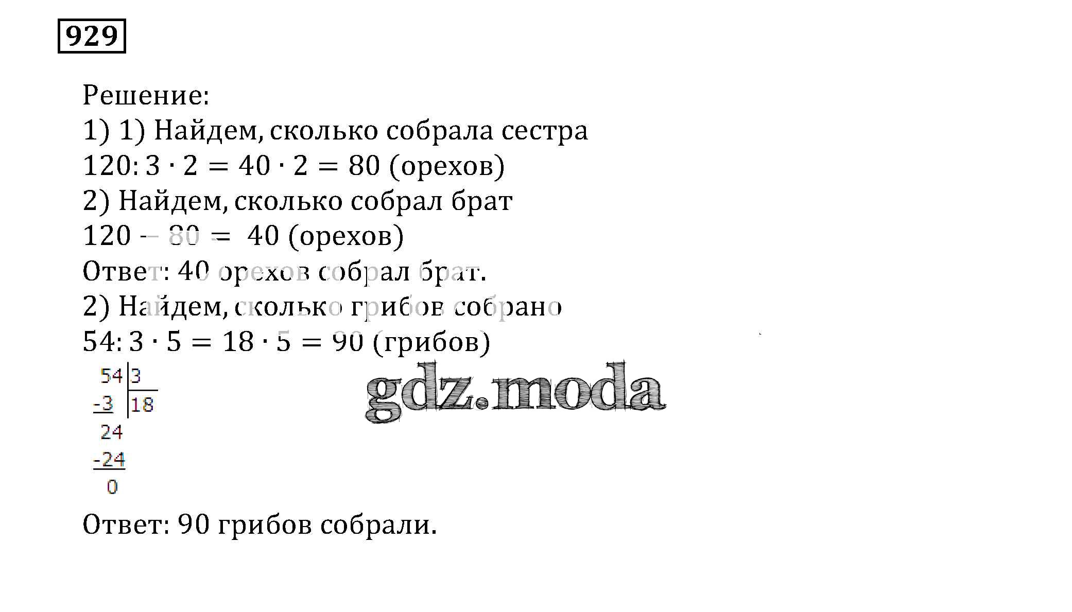 ОТВЕТ на задание № 929 Учебник по Математике 5 класс Муравин