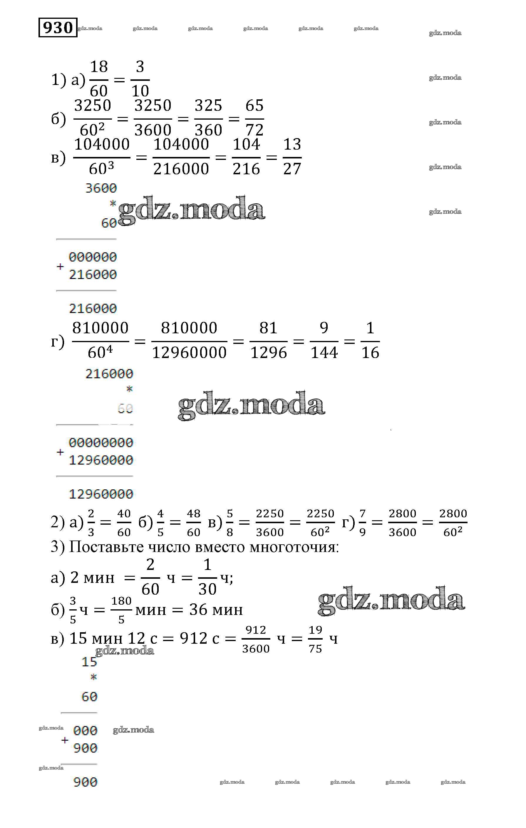 ОТВЕТ на задание № 930 Учебник по Математике 5 класс Муравин