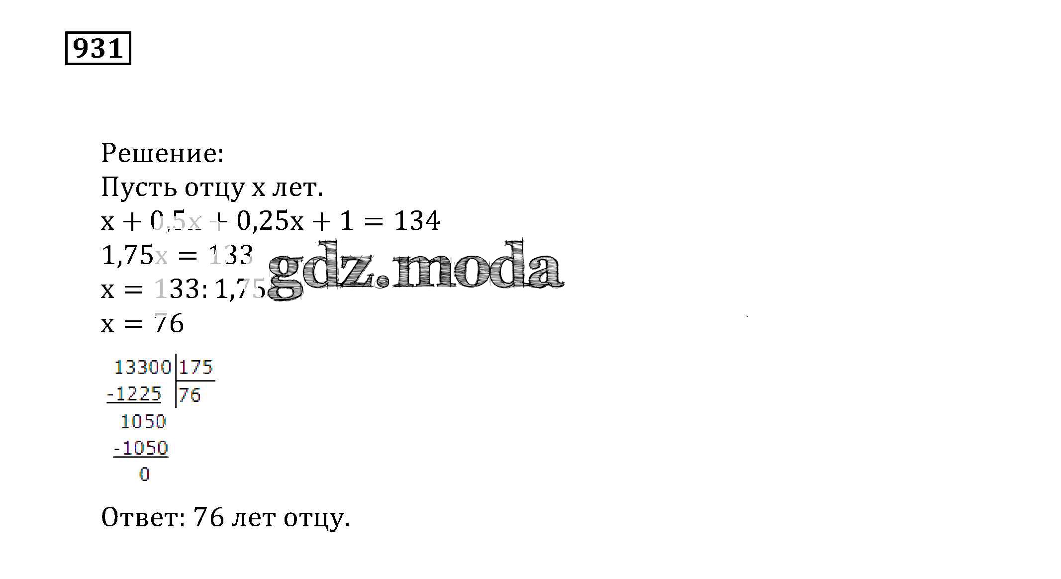 ОТВЕТ на задание № 931 Учебник по Математике 5 класс Муравин