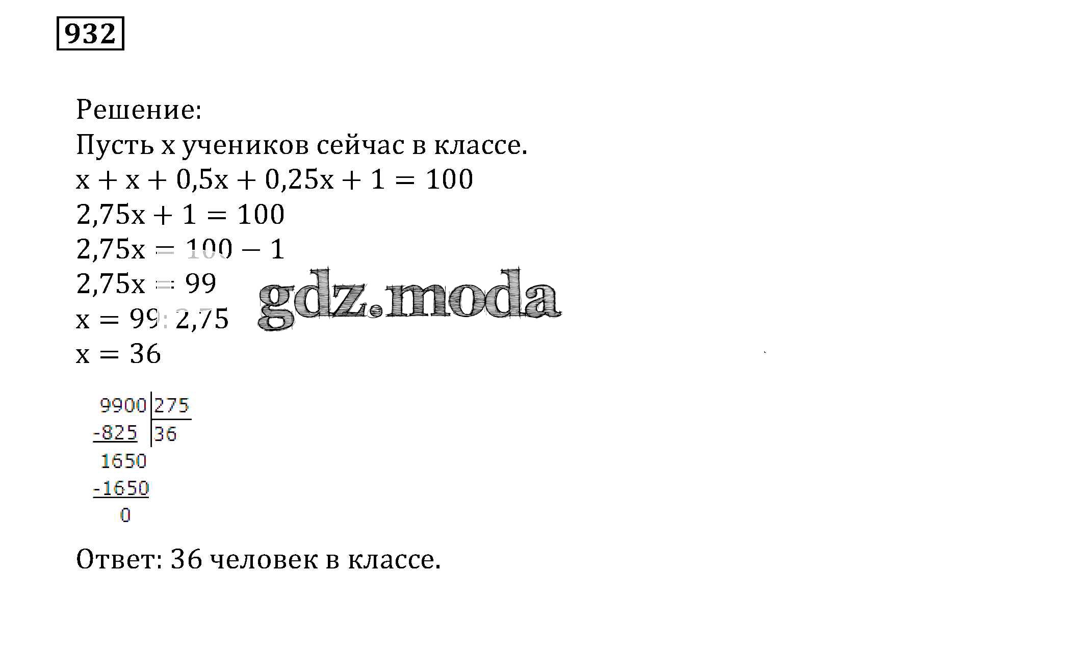 ОТВЕТ на задание № 932 Учебник по Математике 5 класс Муравин