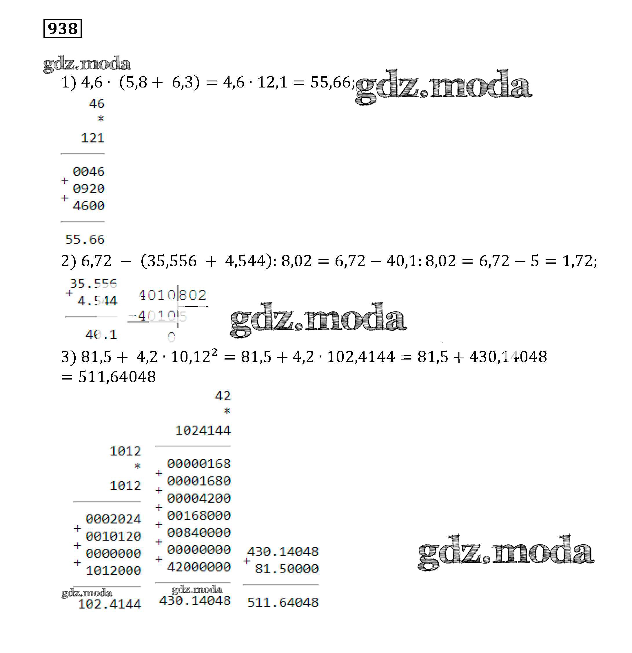 ОТВЕТ на задание № 938 Учебник по Математике 5 класс Муравин