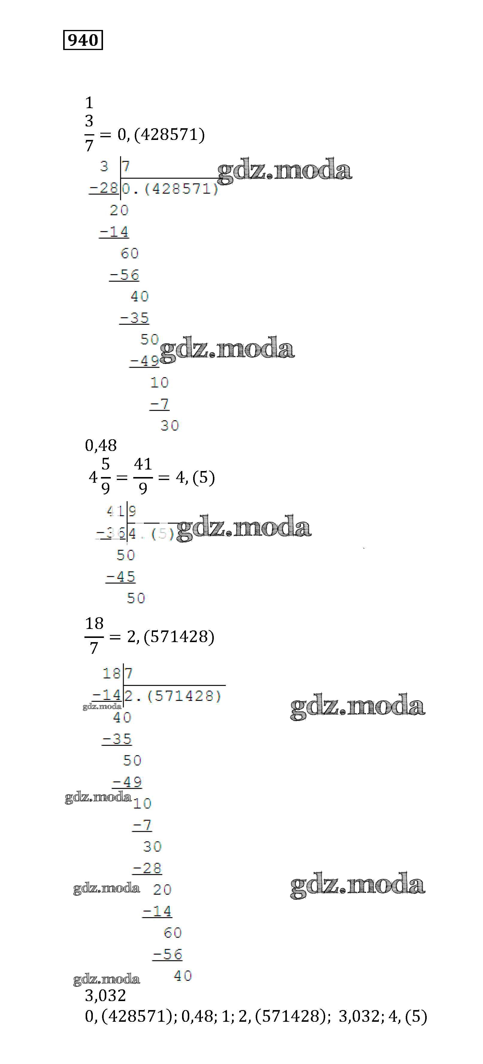 ОТВЕТ на задание № 940 Учебник по Математике 5 класс Муравин