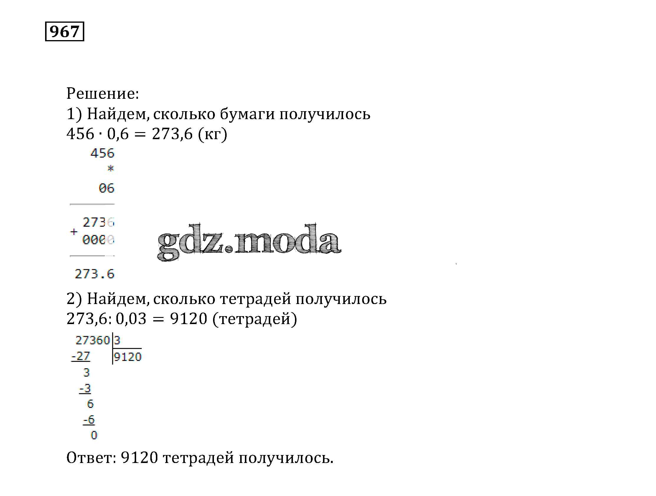 ОТВЕТ на задание № 967 Учебник по Математике 5 класс Муравин