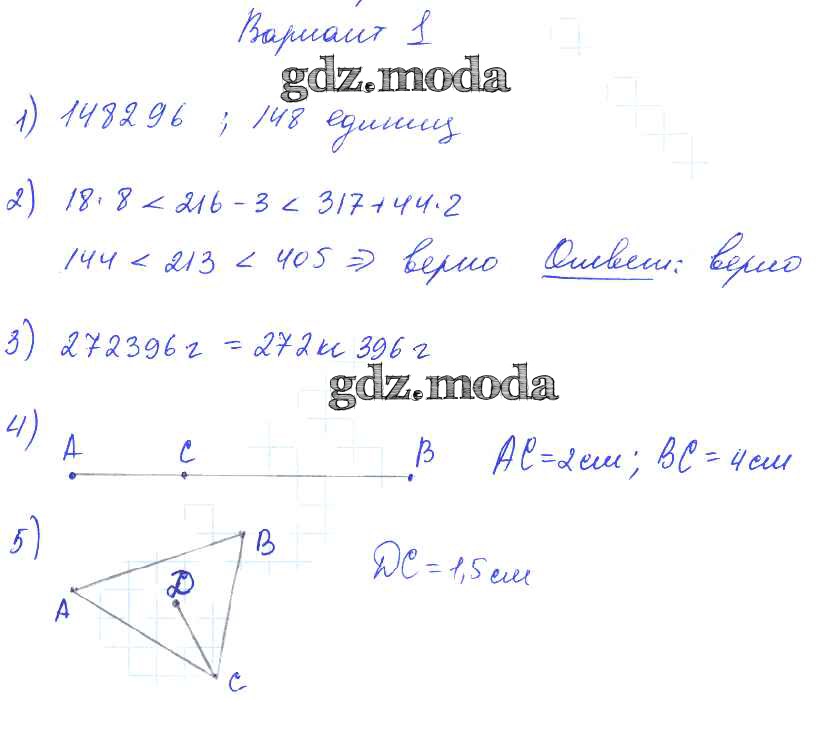 ОТВЕТ на задание № вариант №1 Дидактические материалы по Математике 5 класс Попов УМК
