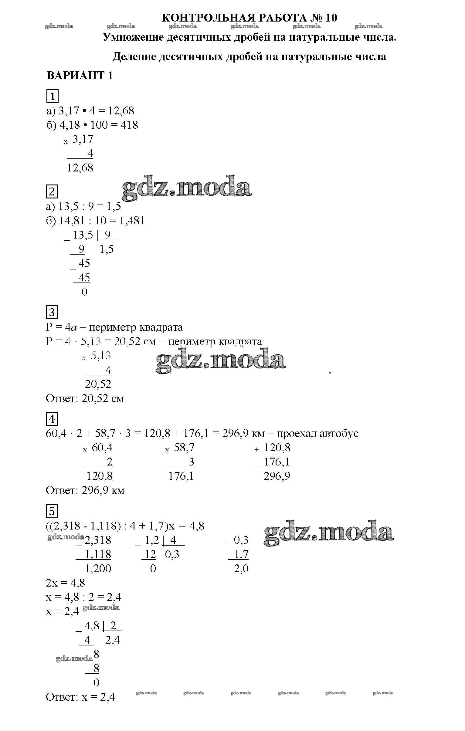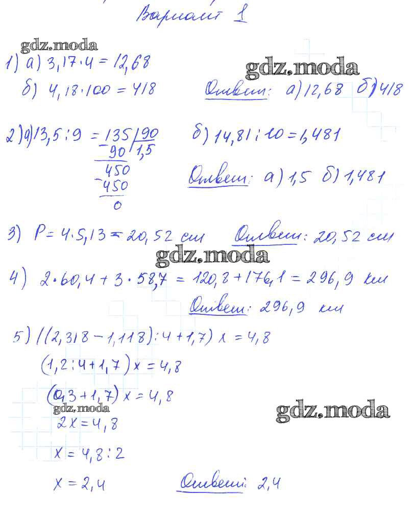 ОТВЕТ на задание № вариант №1 Дидактические материалы по Математике 5 класс Попов УМК