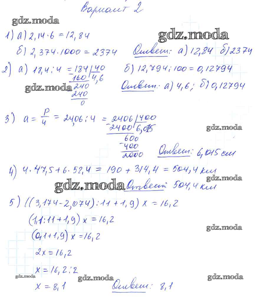 ОТВЕТ на задание № вариант №2 Дидактические материалы по Математике 5 класс Попов УМК