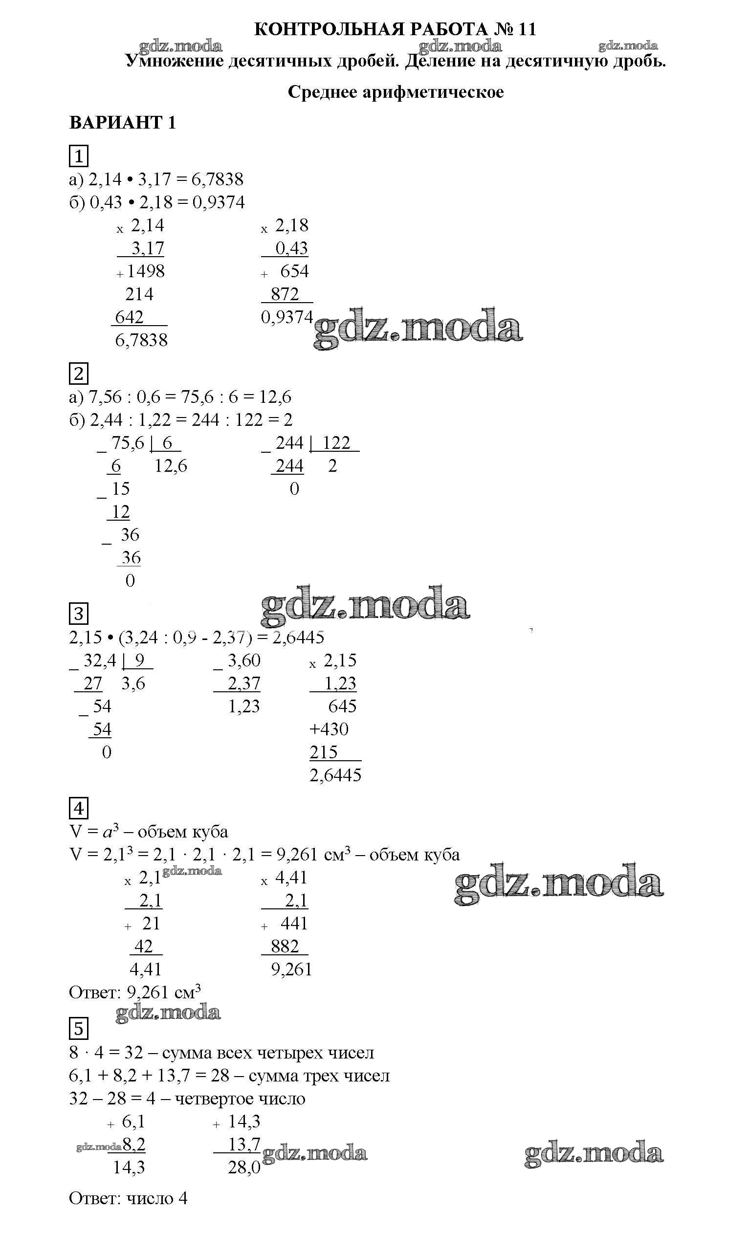 ОТВЕТ на задание № вариант №1 Дидактические материалы по Математике 5 класс Попов УМК