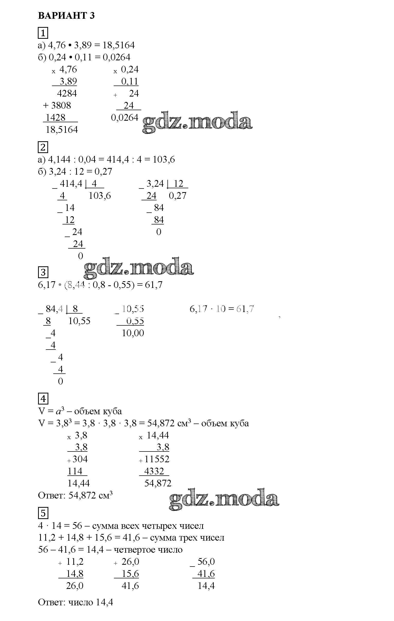 ОТВЕТ на задание № вариант №3 Дидактические материалы по Математике 5 класс Попов УМК