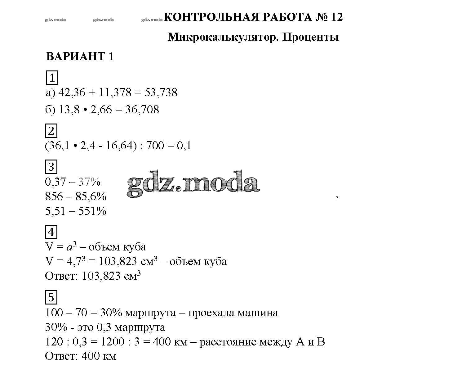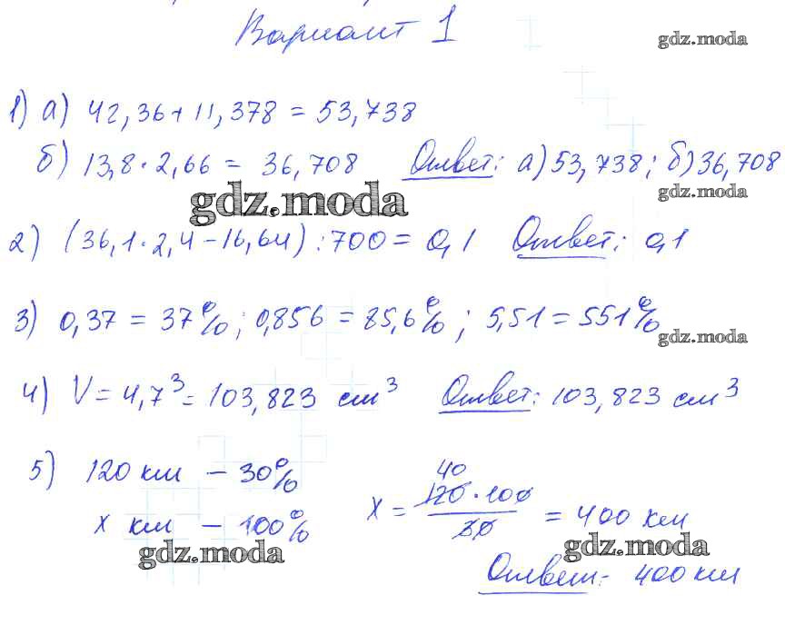 ОТВЕТ на задание № вариант №1 Дидактические материалы по Математике 5 класс Попов УМК