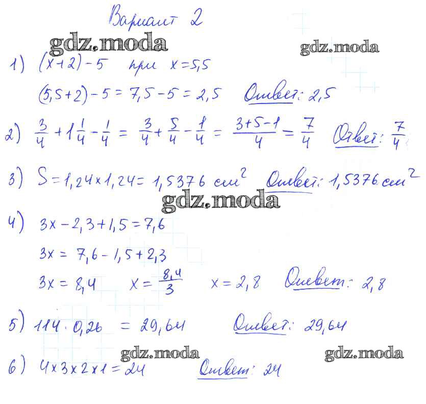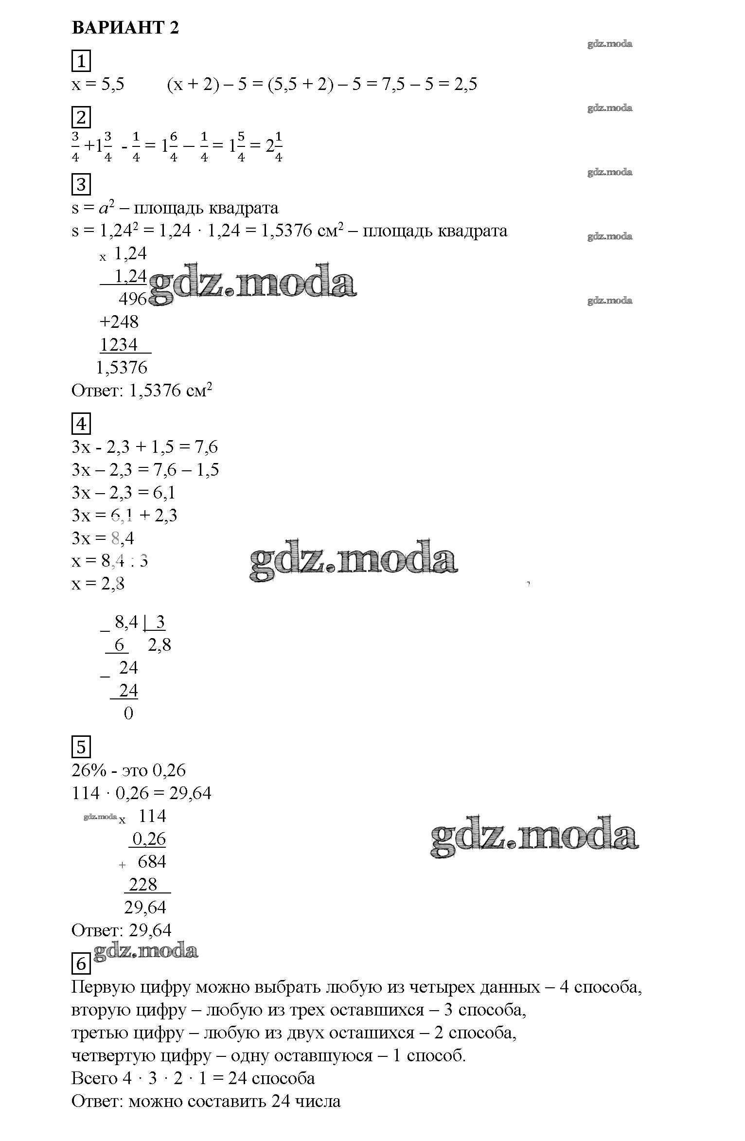 ОТВЕТ на задание № вариант №2 Дидактические материалы по Математике 5 класс Попов УМК