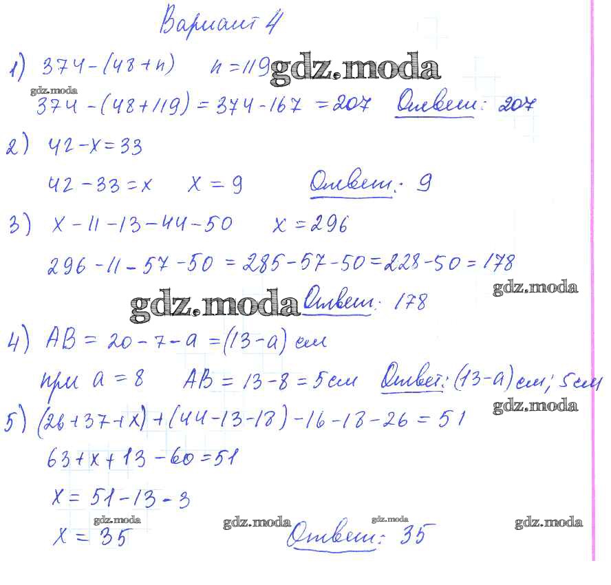 ОТВЕТ на задание № вариант №4 Дидактические материалы по Математике 5 класс Попов УМК