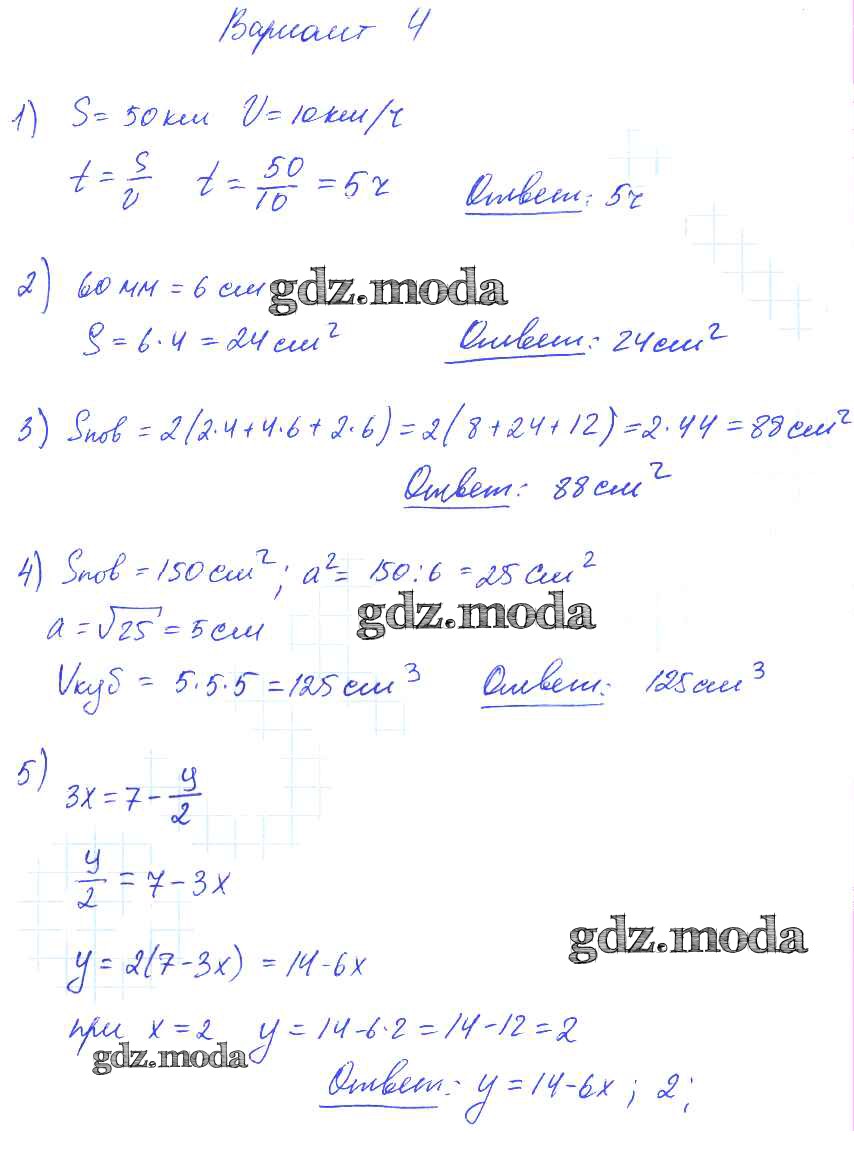 ОТВЕТ на задание № вариант №4 Дидактические материалы по Математике 5 класс Попов УМК