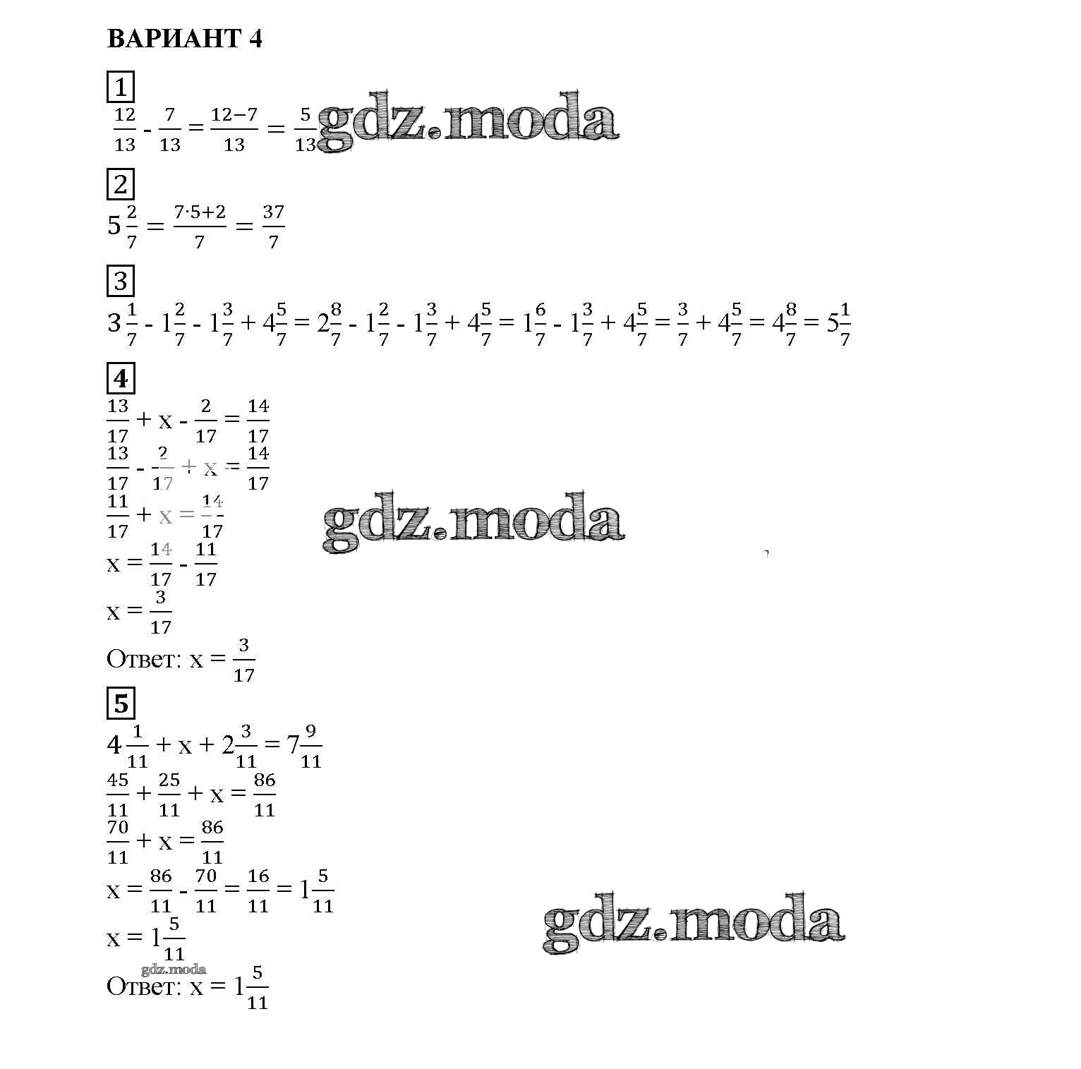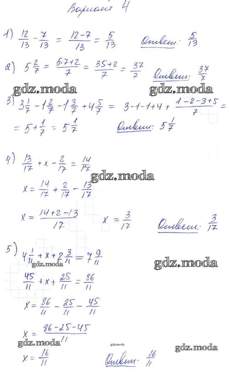 ОТВЕТ на задание № вариант №4 Дидактические материалы по Математике 5 класс Попов УМК